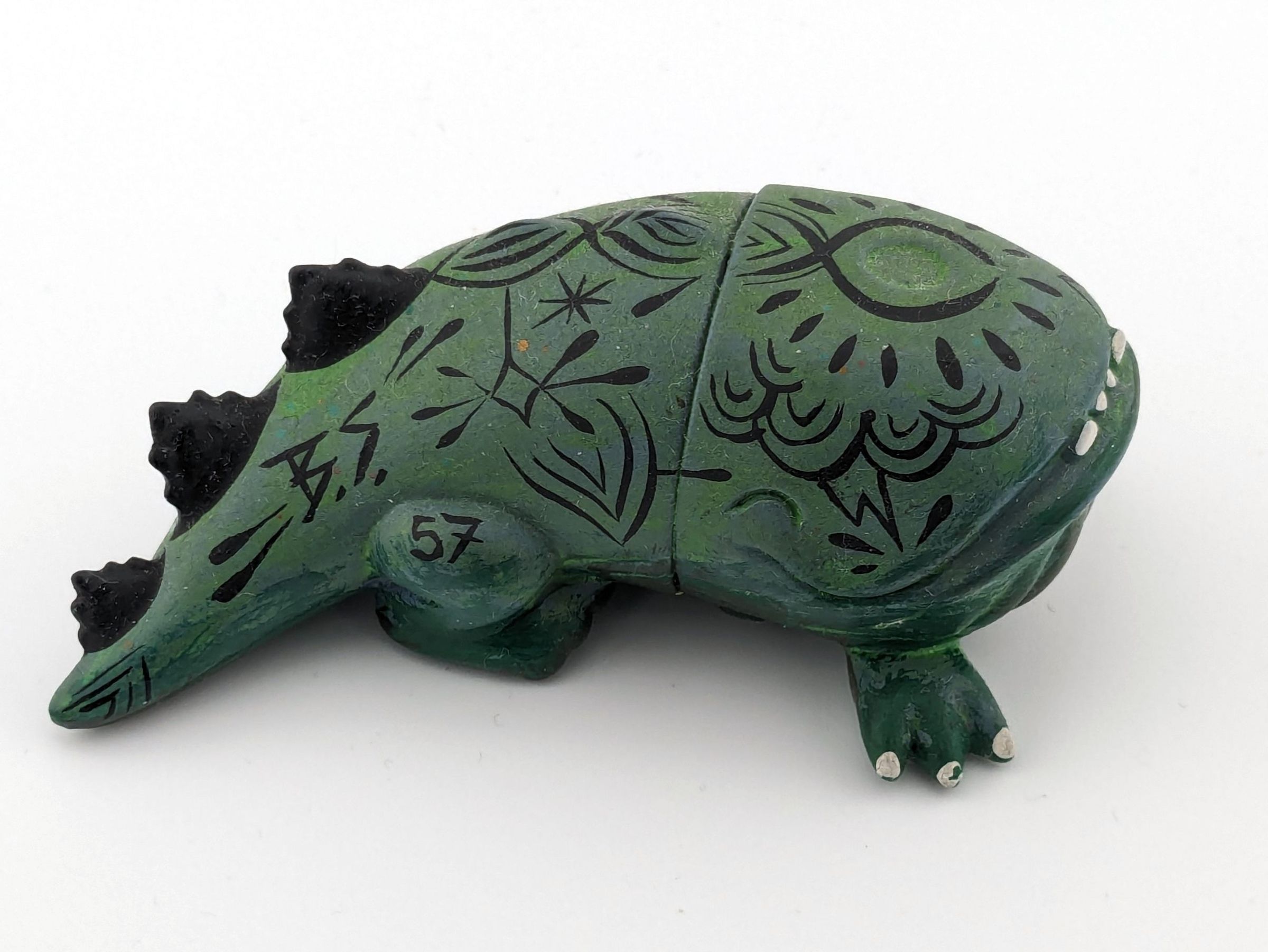 Unknown vinyl with green, olive green, black, and white paint.