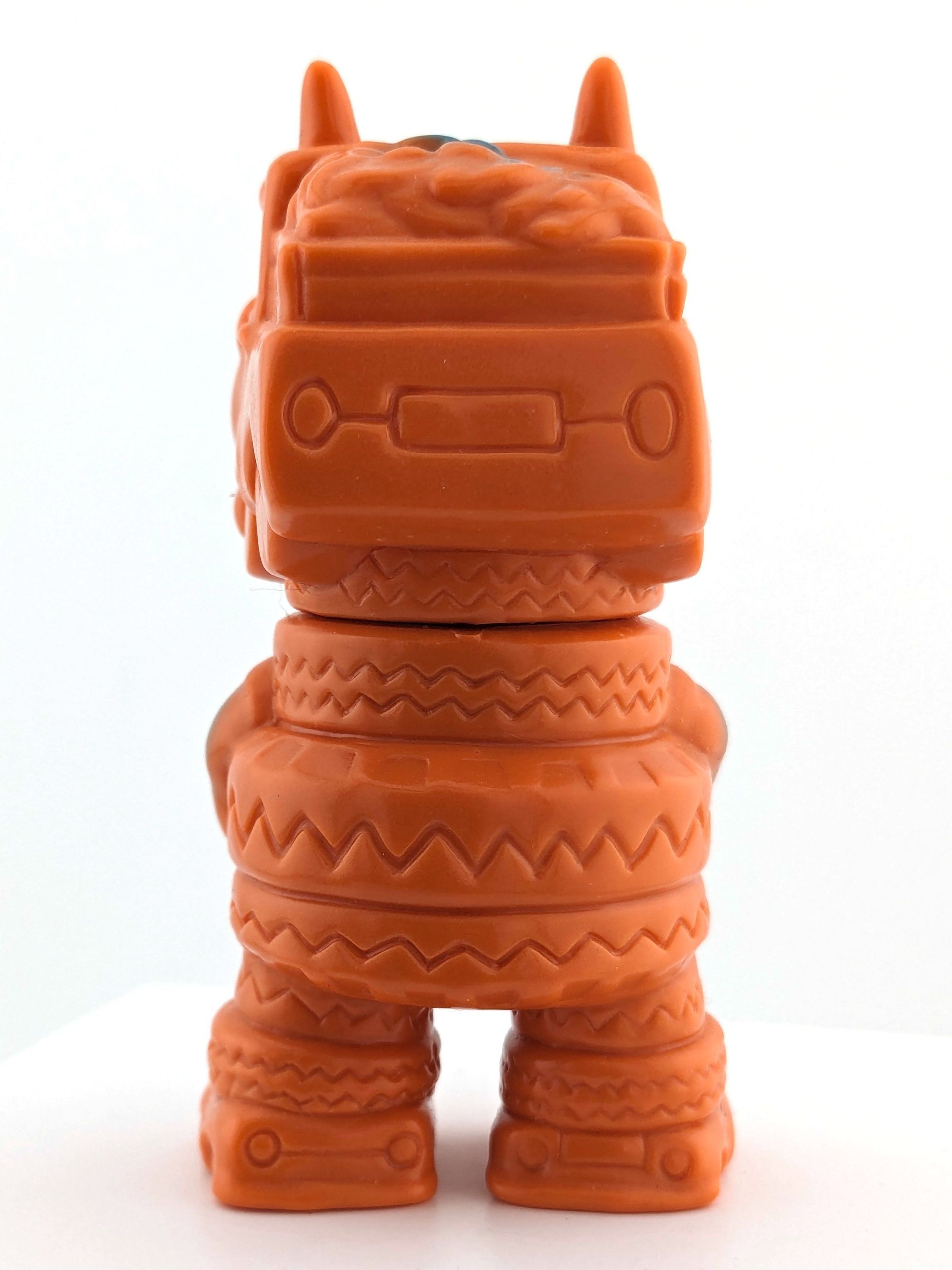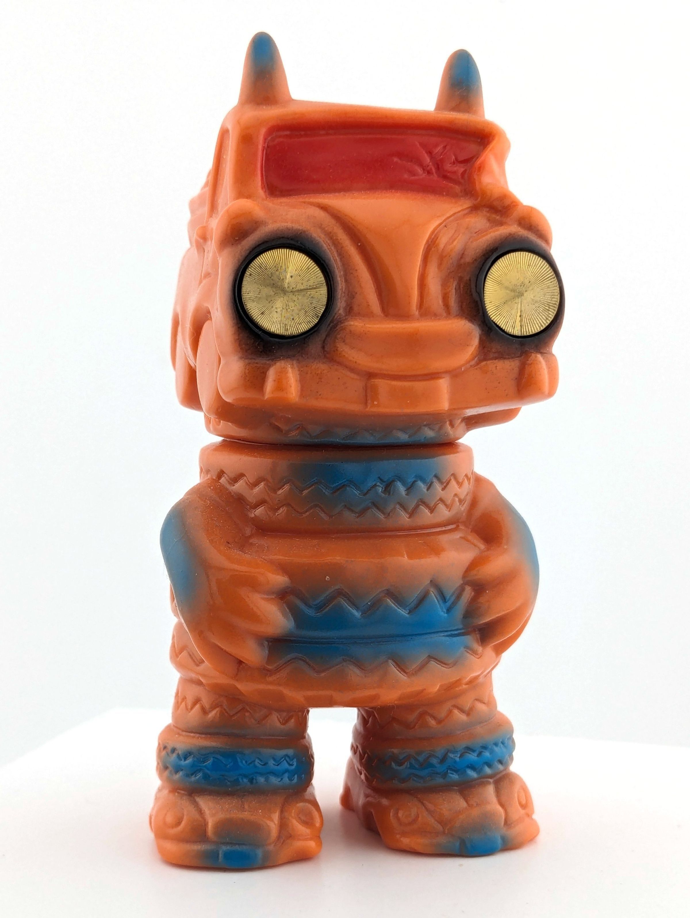 Orange vinyl with blue, red, and black paint; metal disc eyes