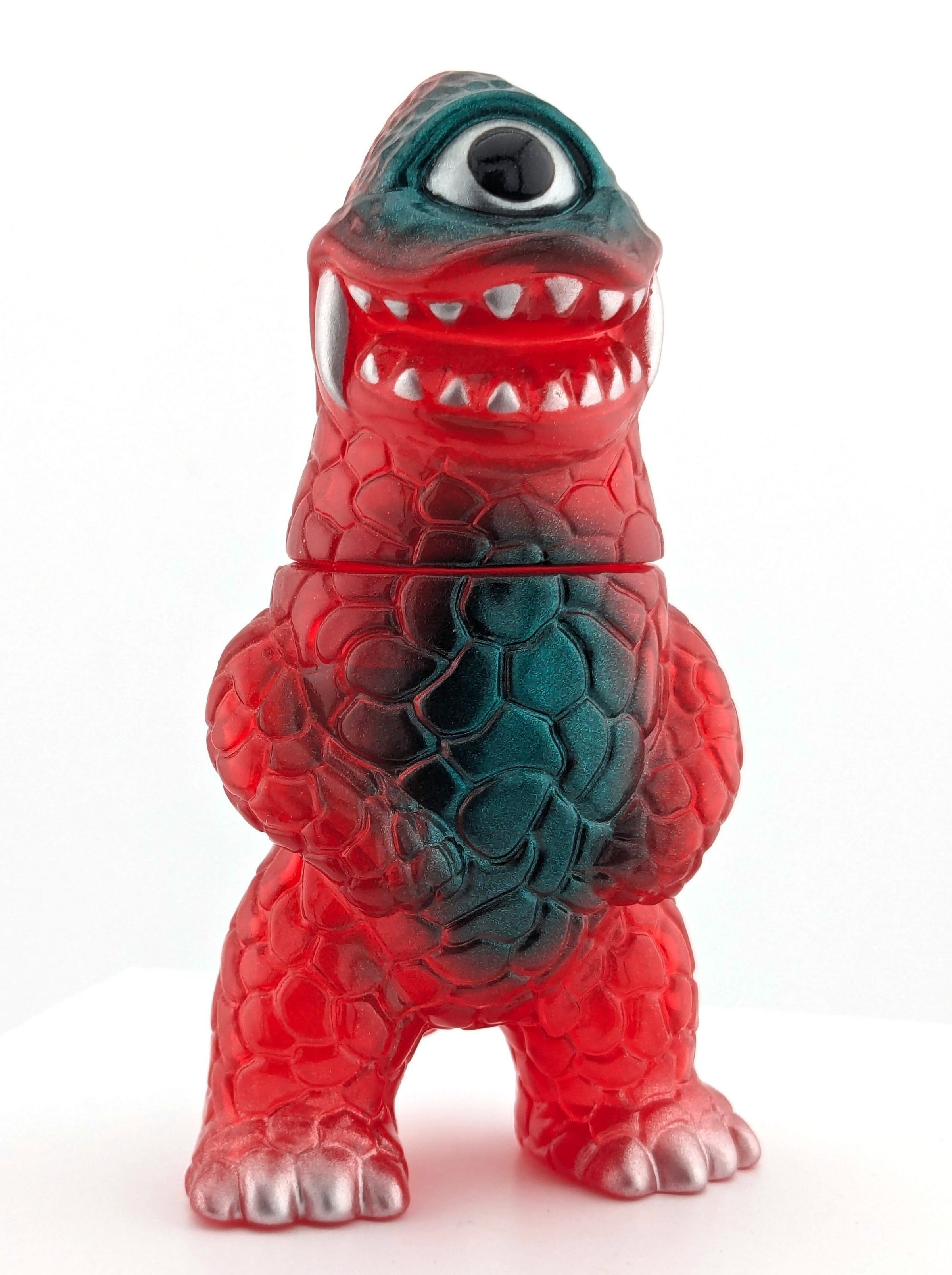 Trans red vinyl with blue and silver paint