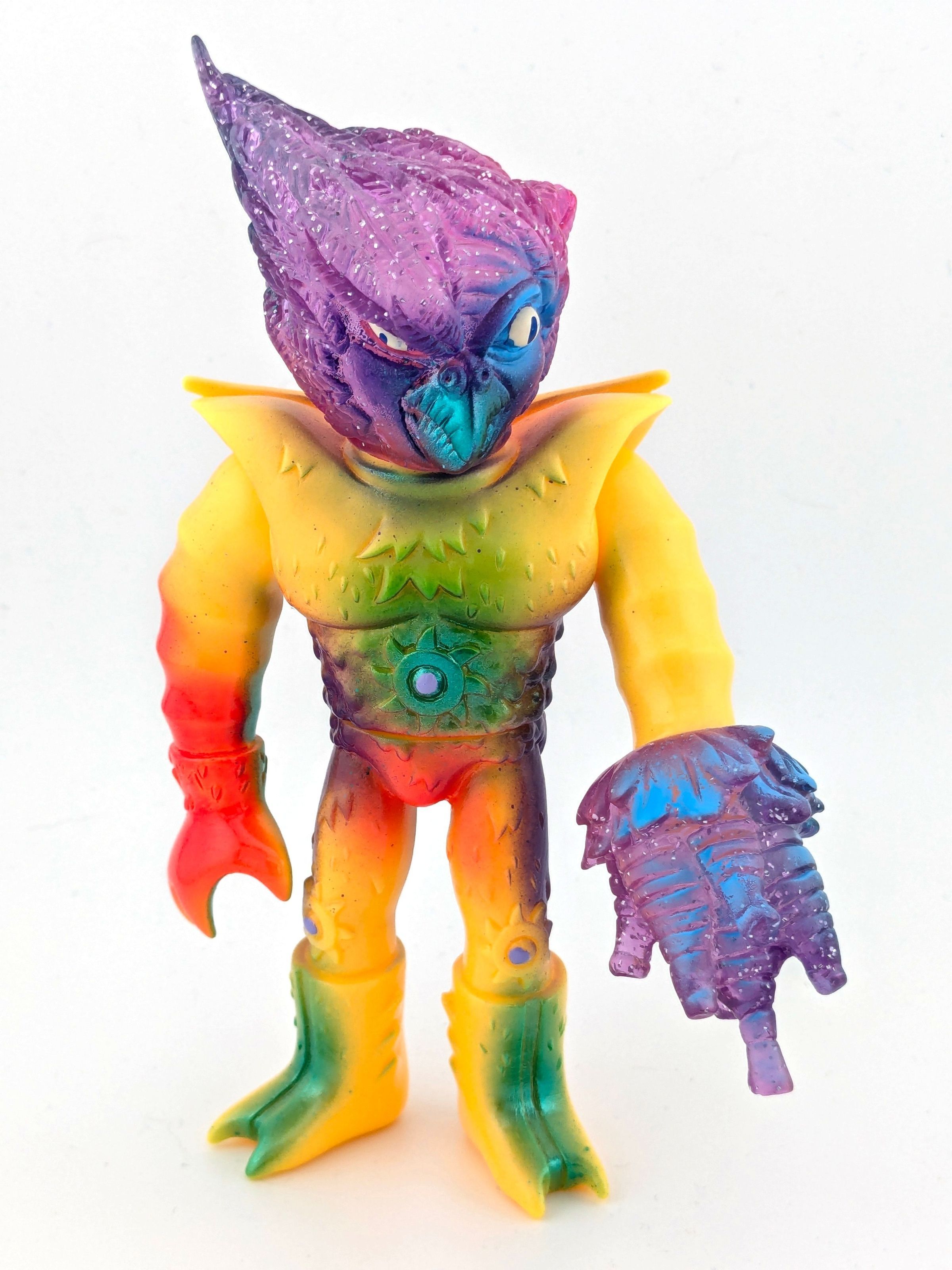 Trans Purple and yellow vinyl with blue, green, orange, purple, black, and white paint.