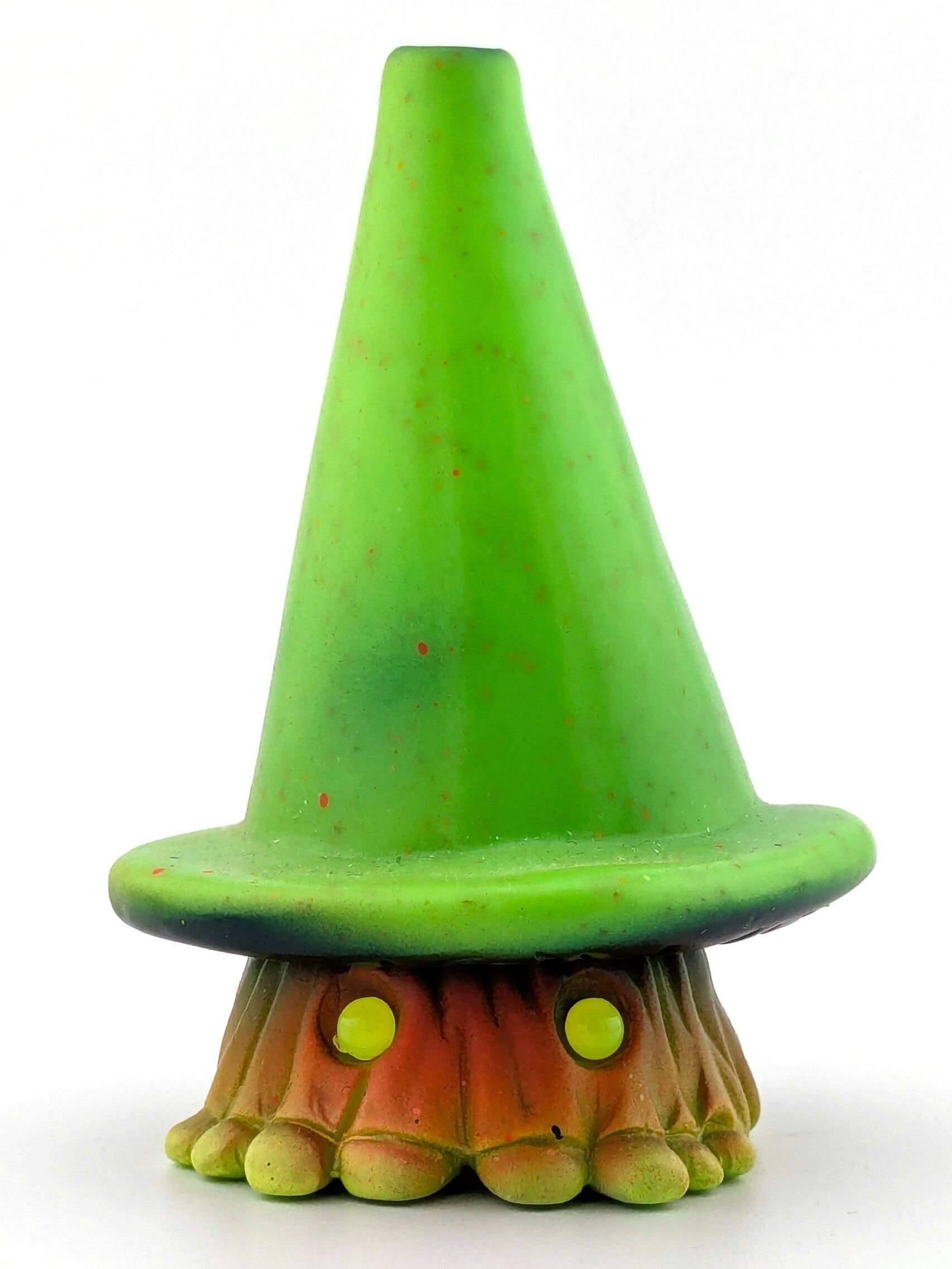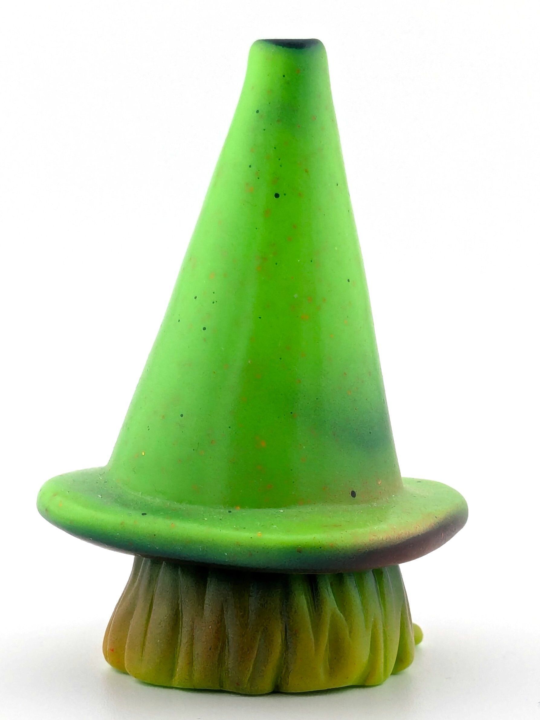 Green sparkle vinyl with blue, orange, and white paint.