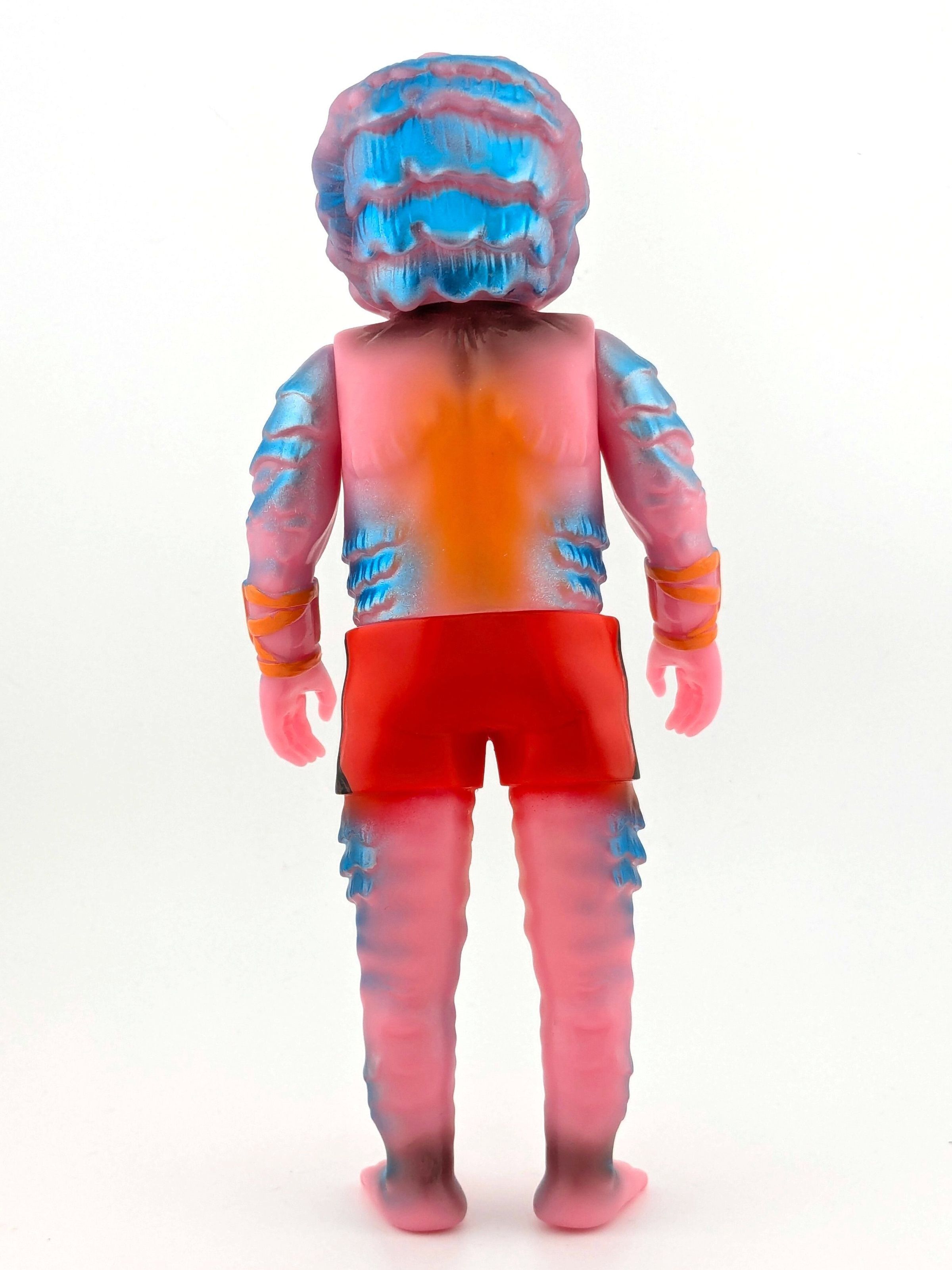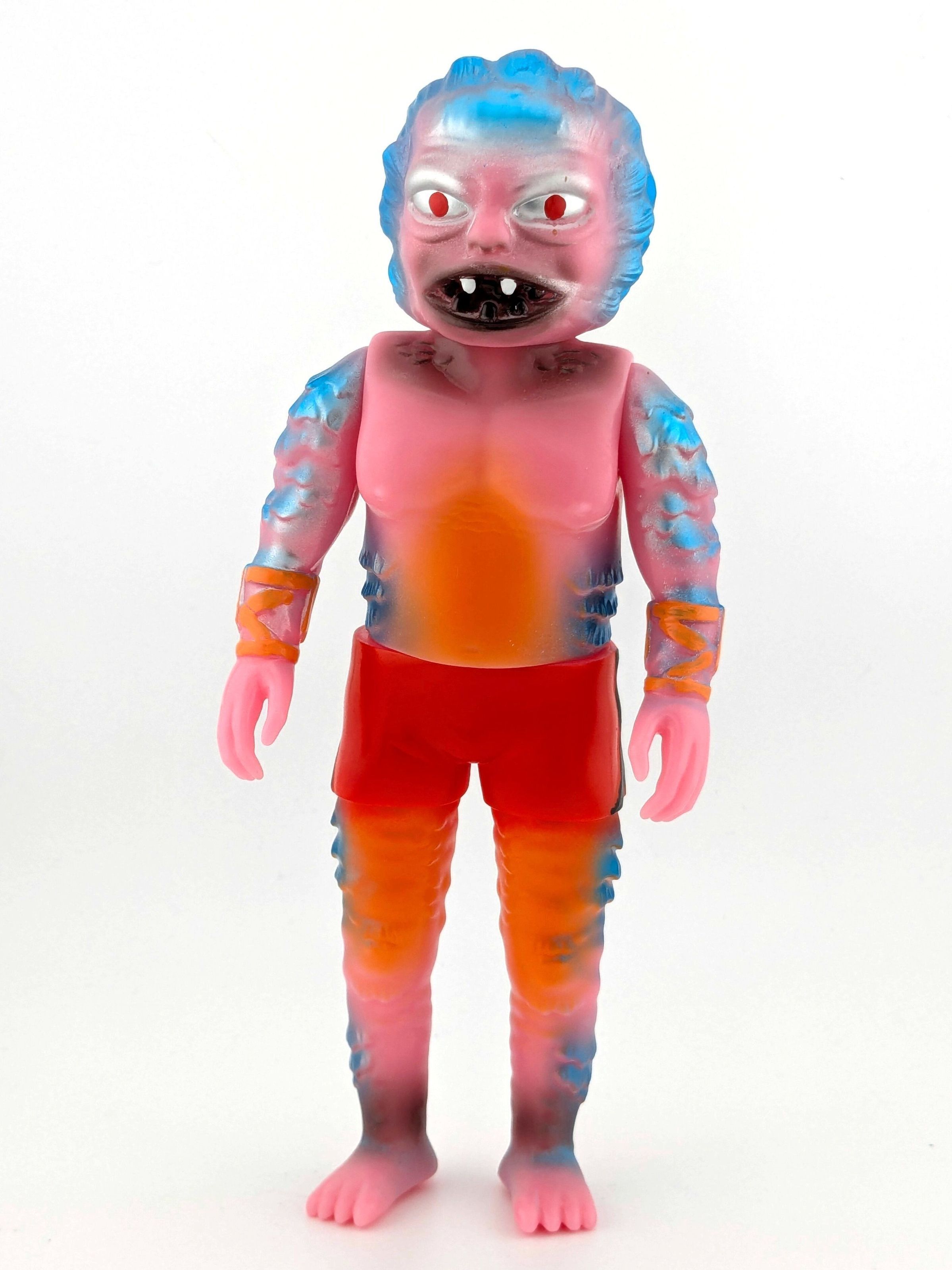 Pink vinyl with metallic blue, orange, red, black, and silver paint