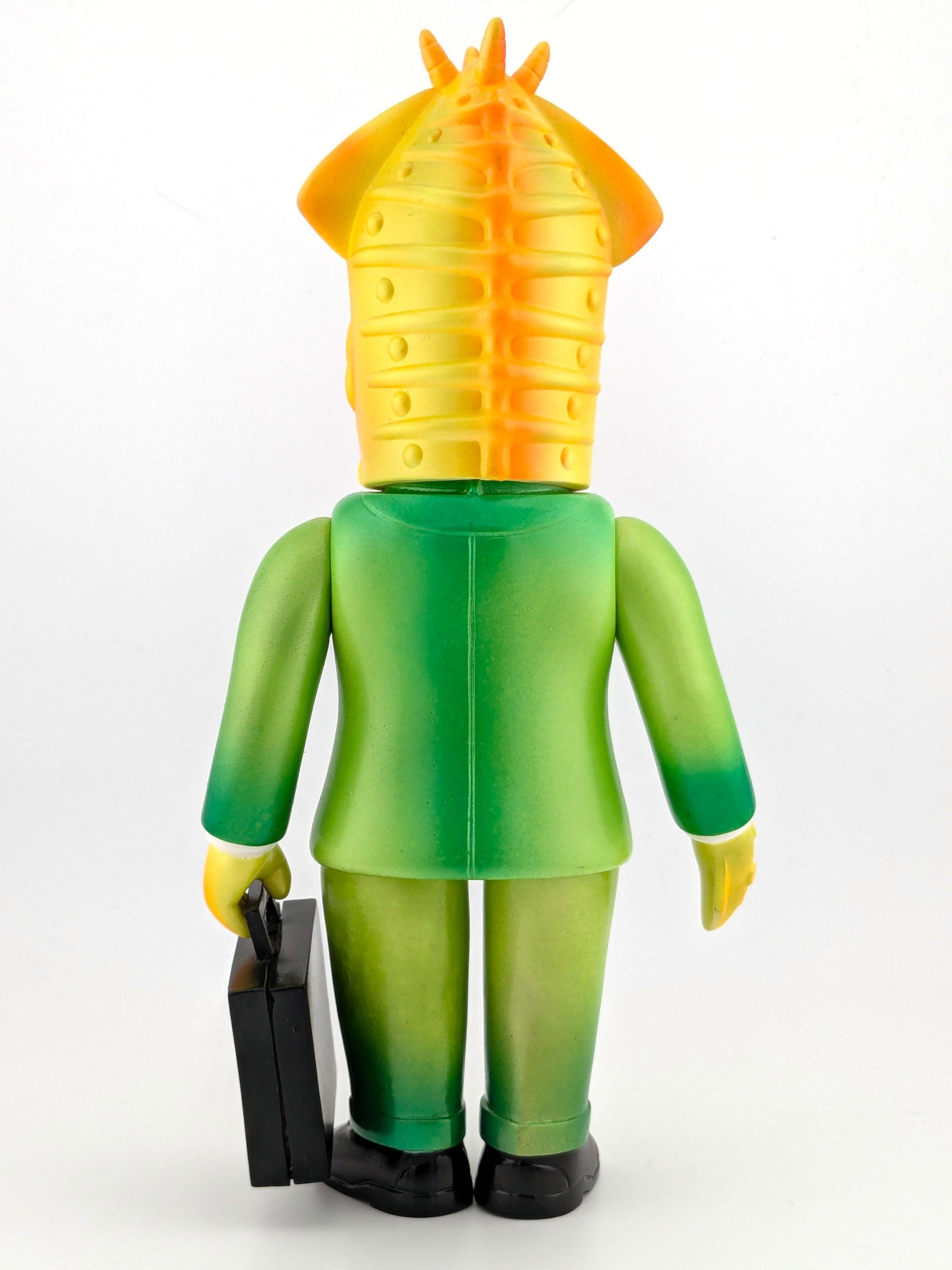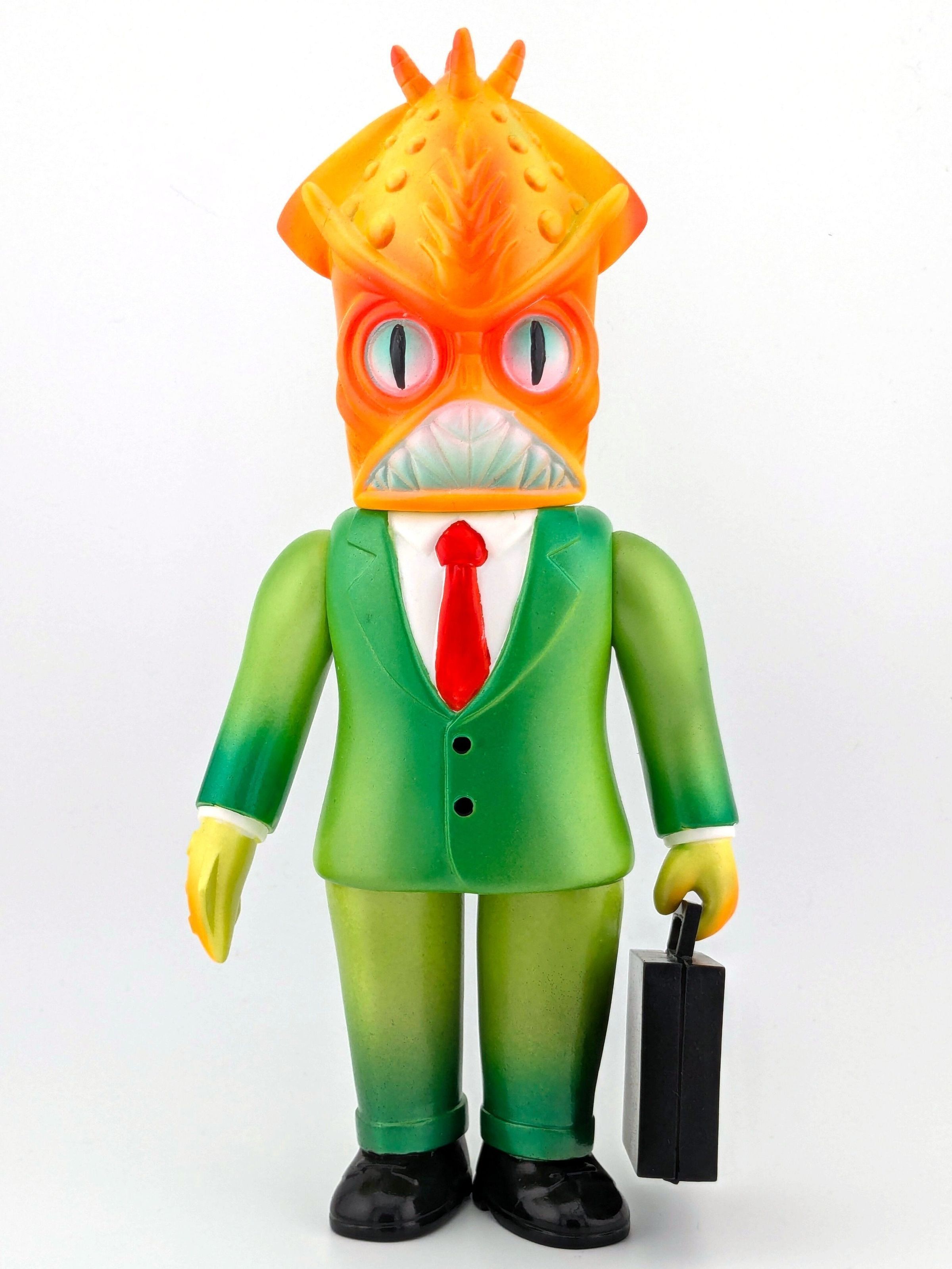 White and black vinyl with orange, yellow, red, white, green, dark green, and black paint