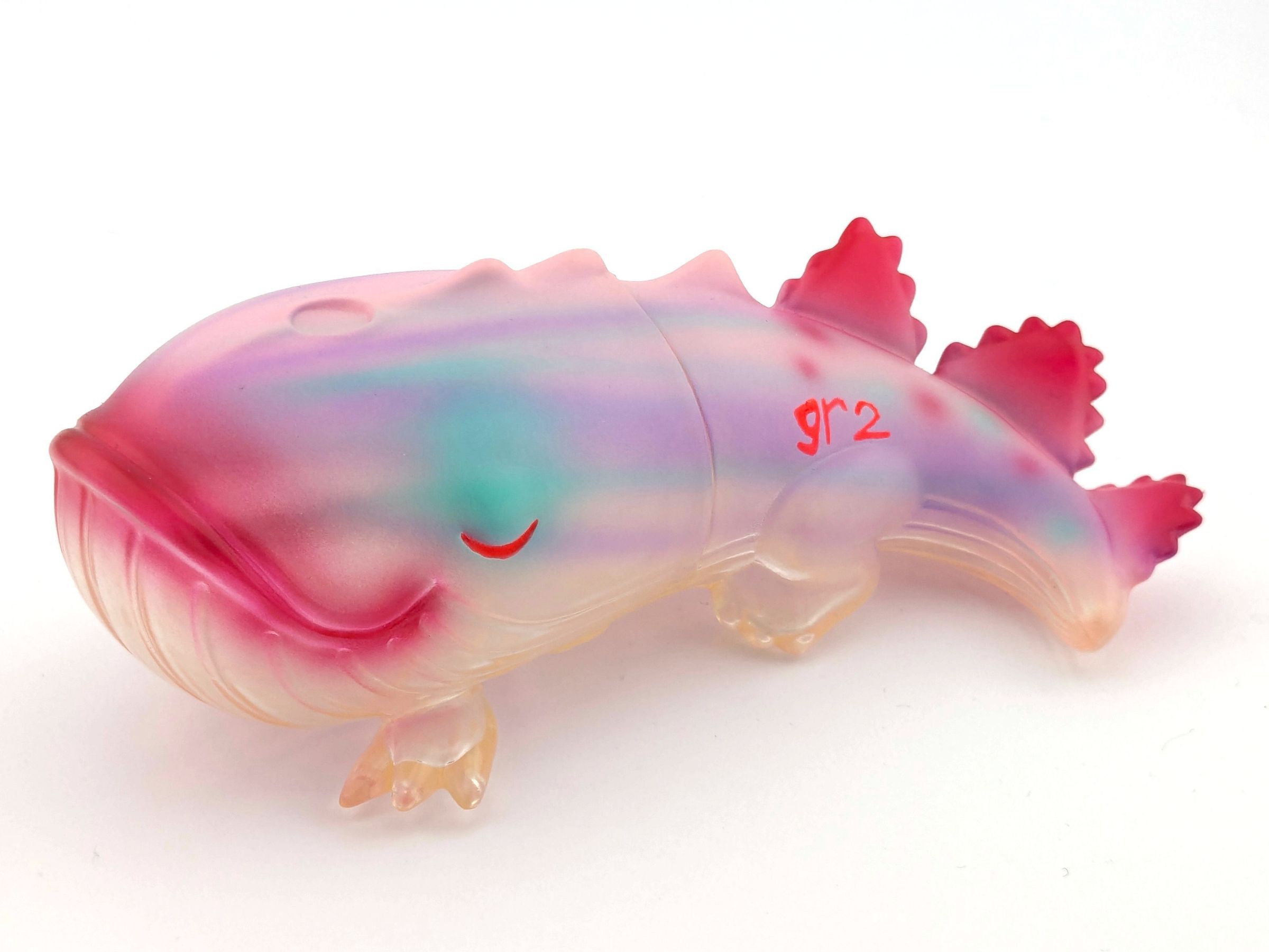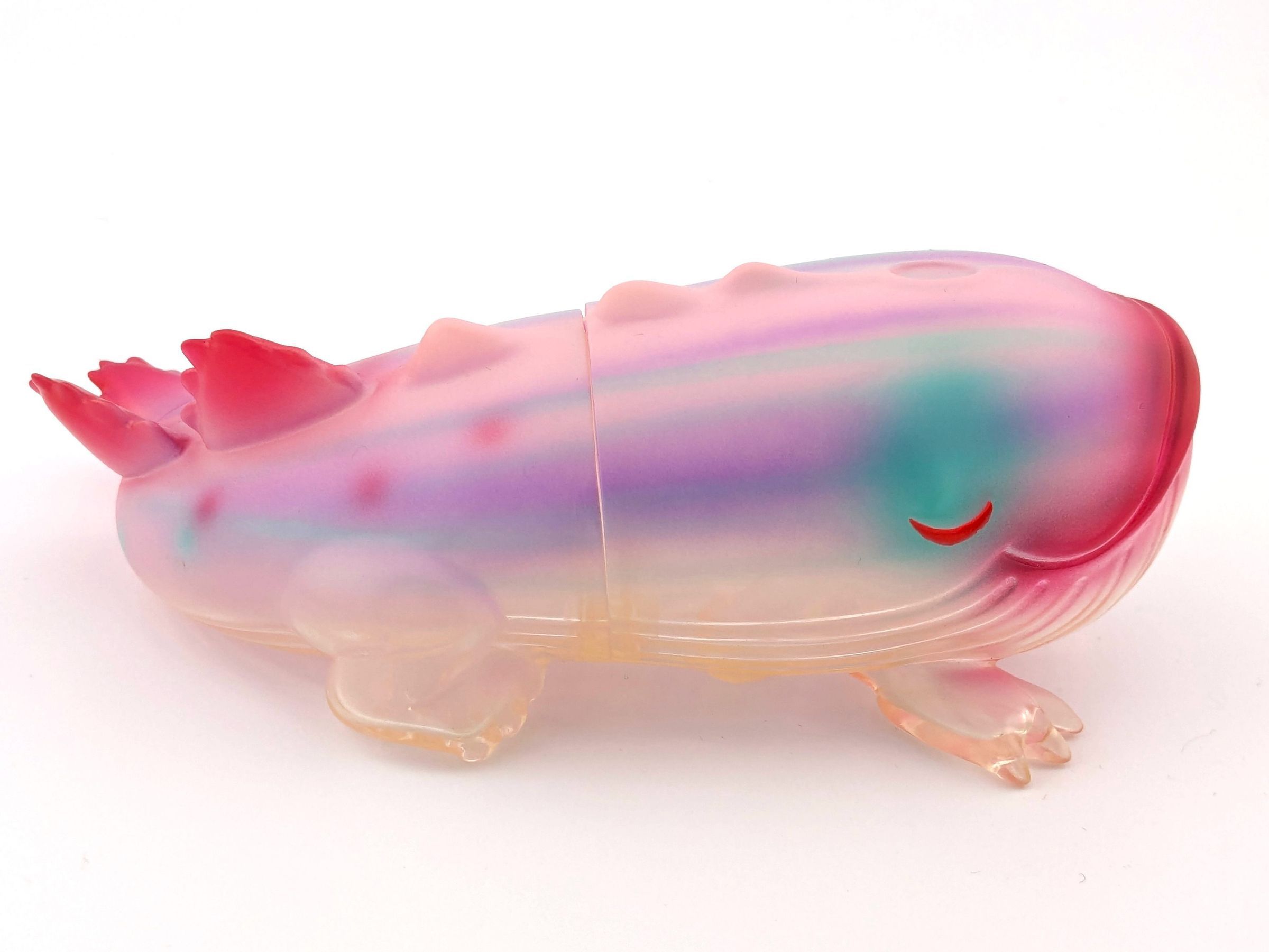 Clear vinyl with pink, purple, and turquoise paint
