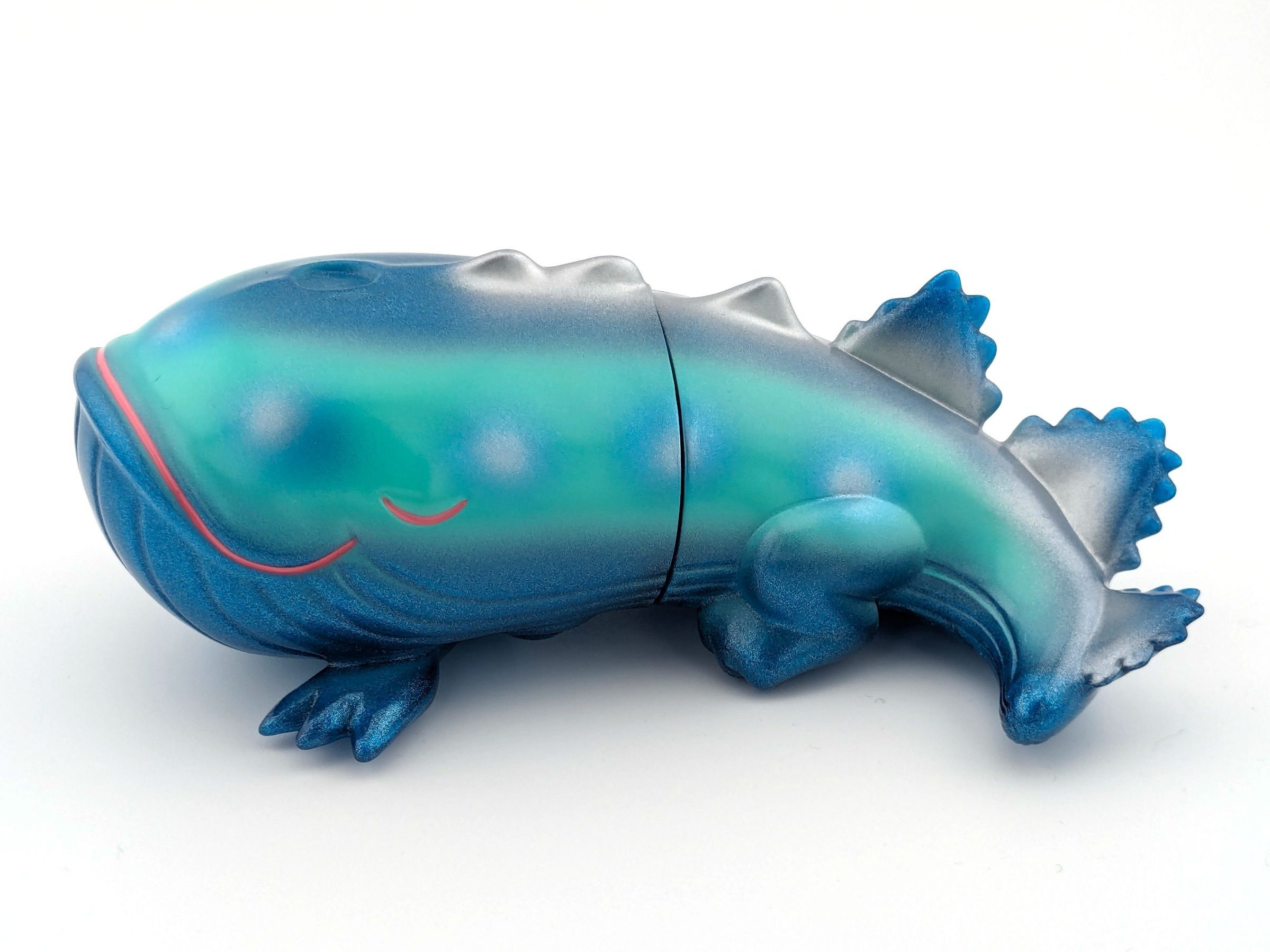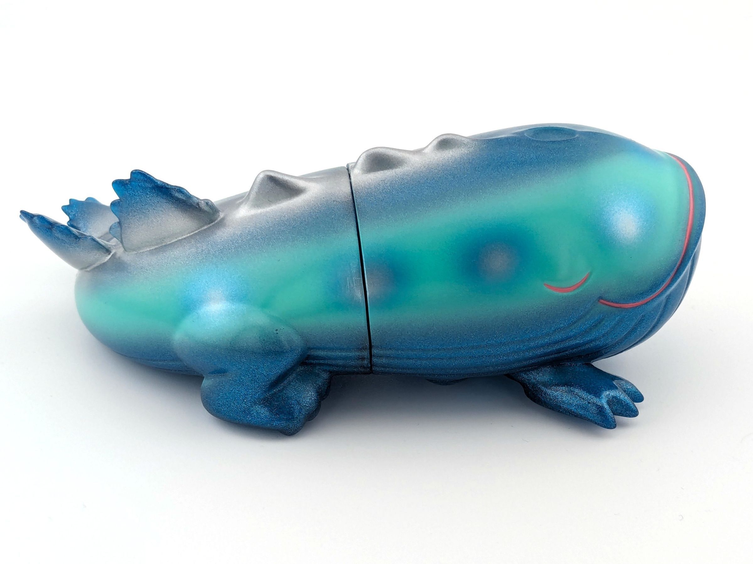 Blue lame vinyl with turquise, silver, and pink paint