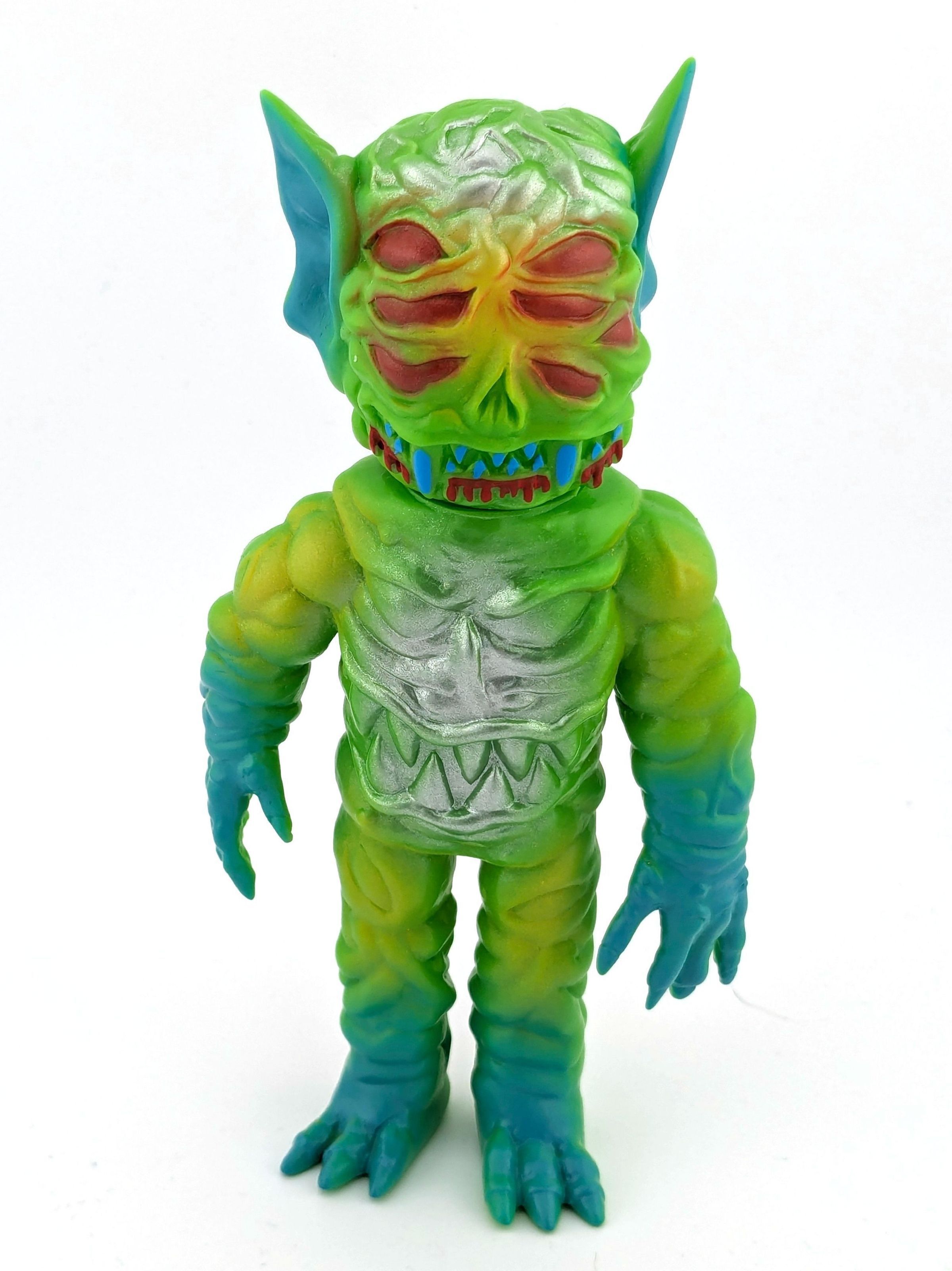 Green vinyl with blue, silver, red, and yellow paint