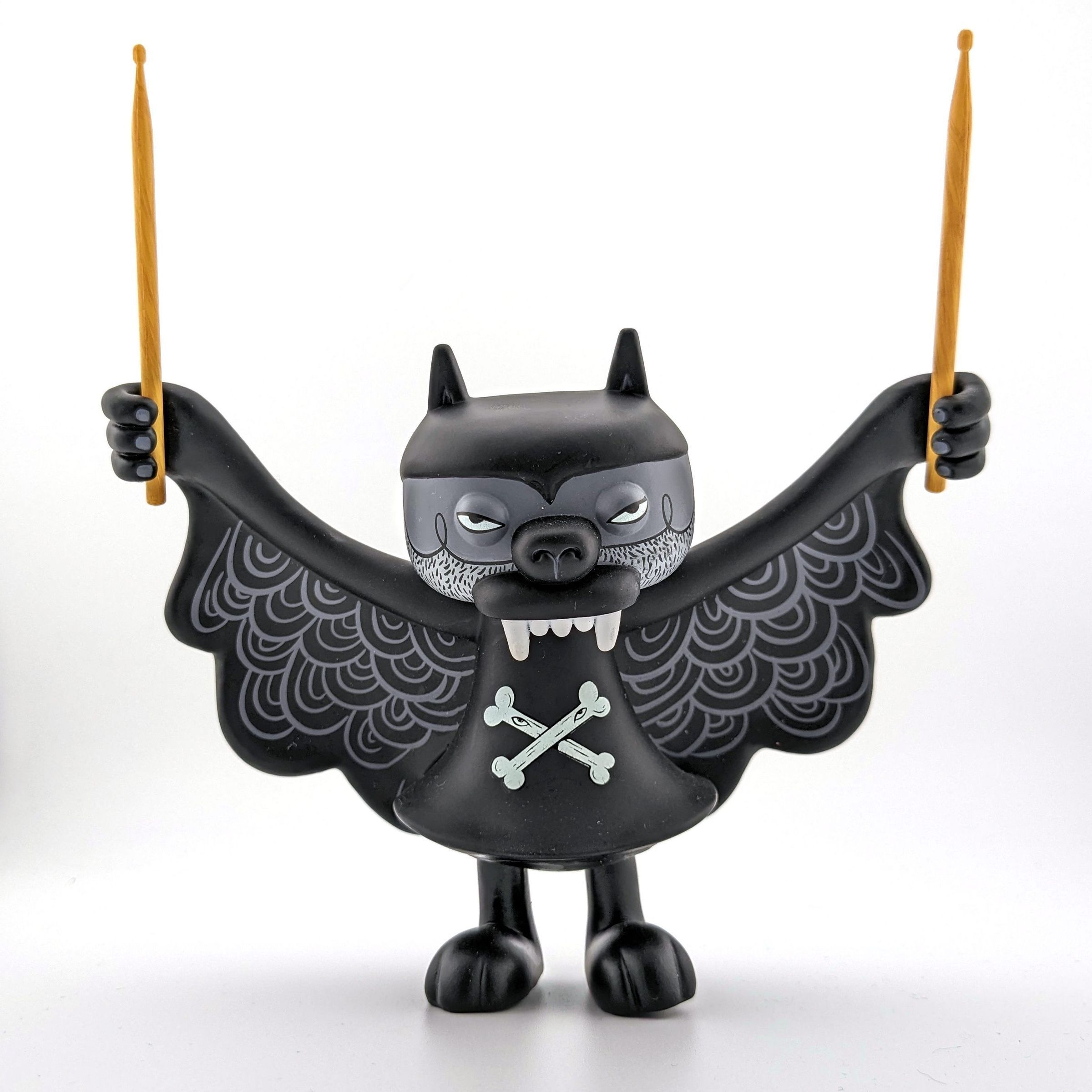 Black vinyl with white and gray details; includes drumsticks and box