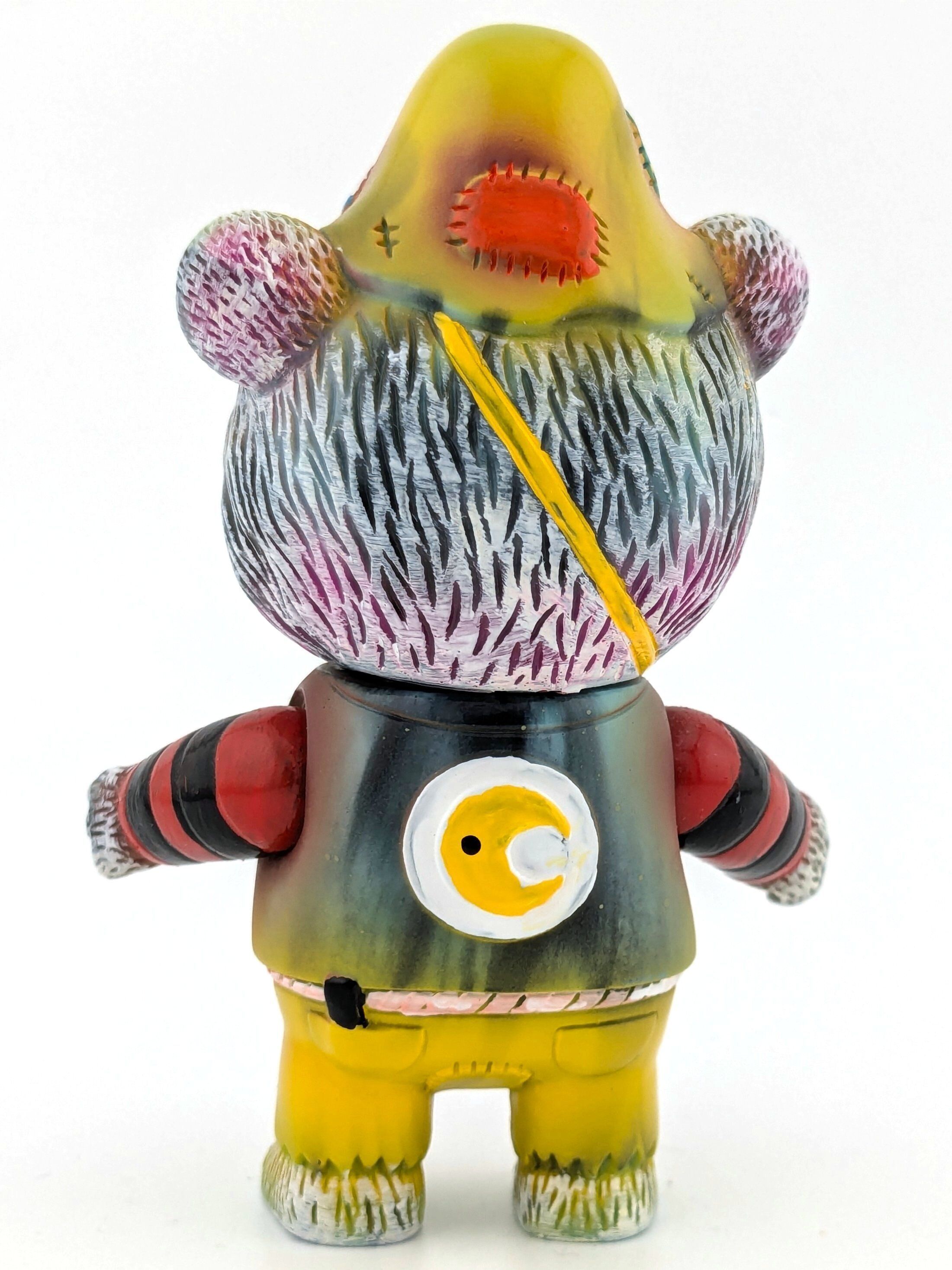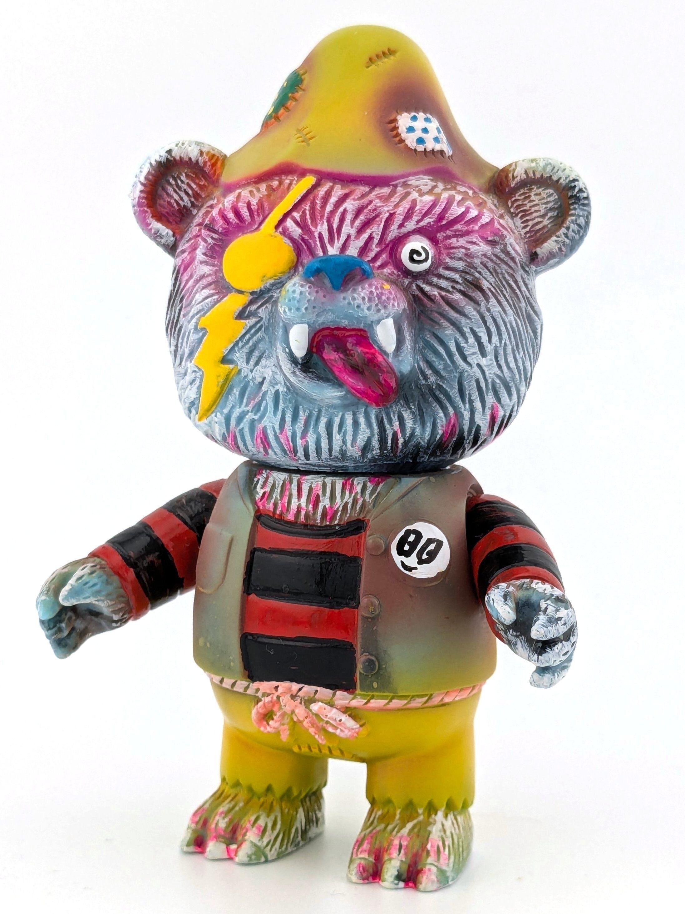 Yellow and black marbled vinyl with red, white, black, yellow, pink, blue, and green paint