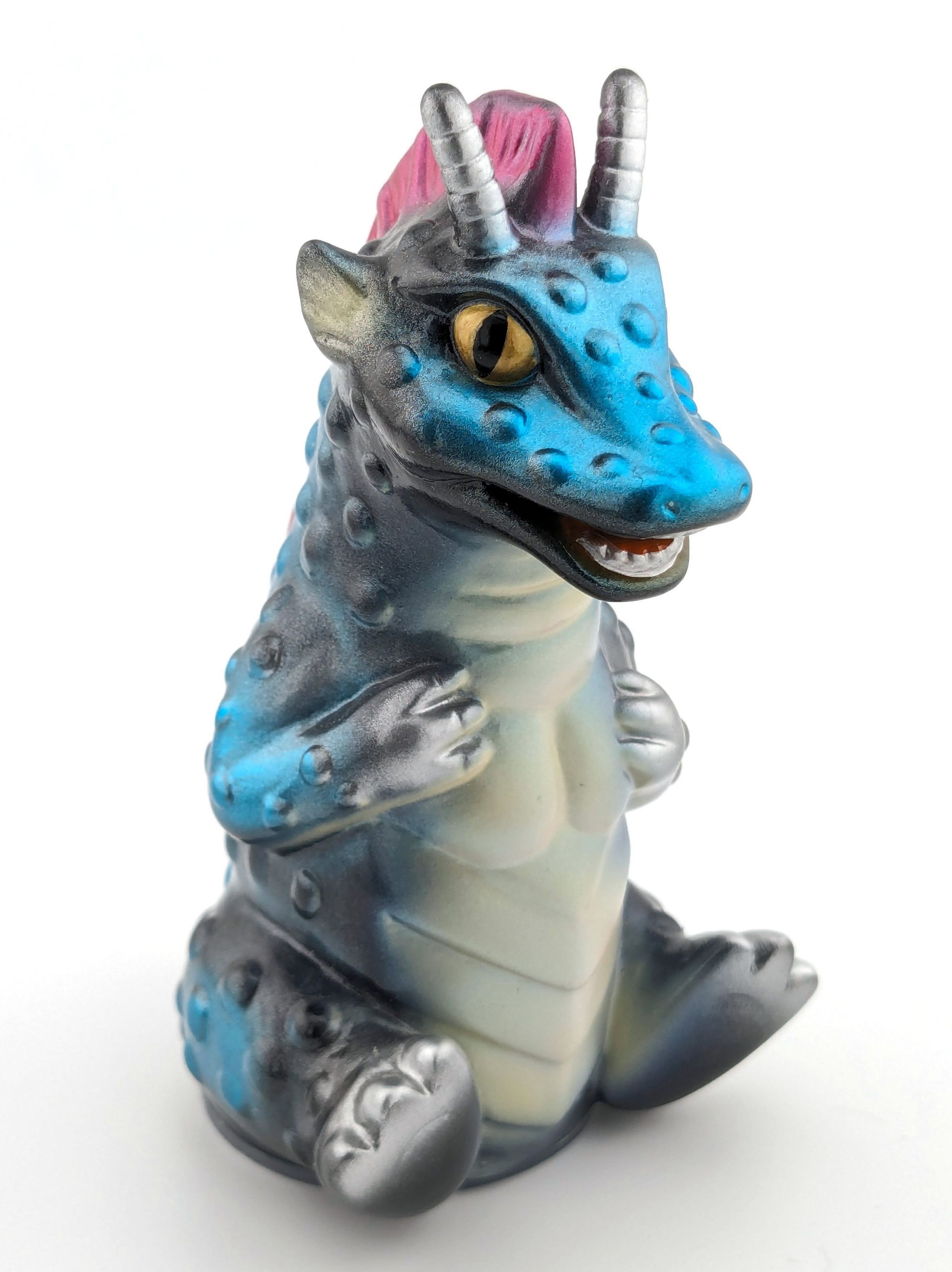 Black vinyl with magenta, blue, and white paint