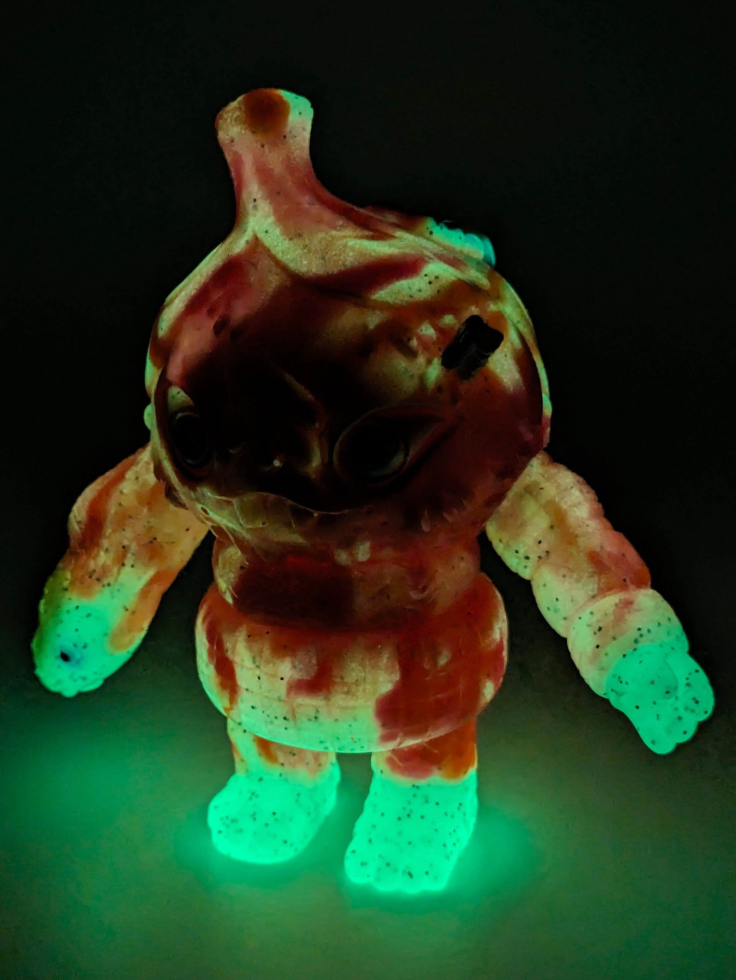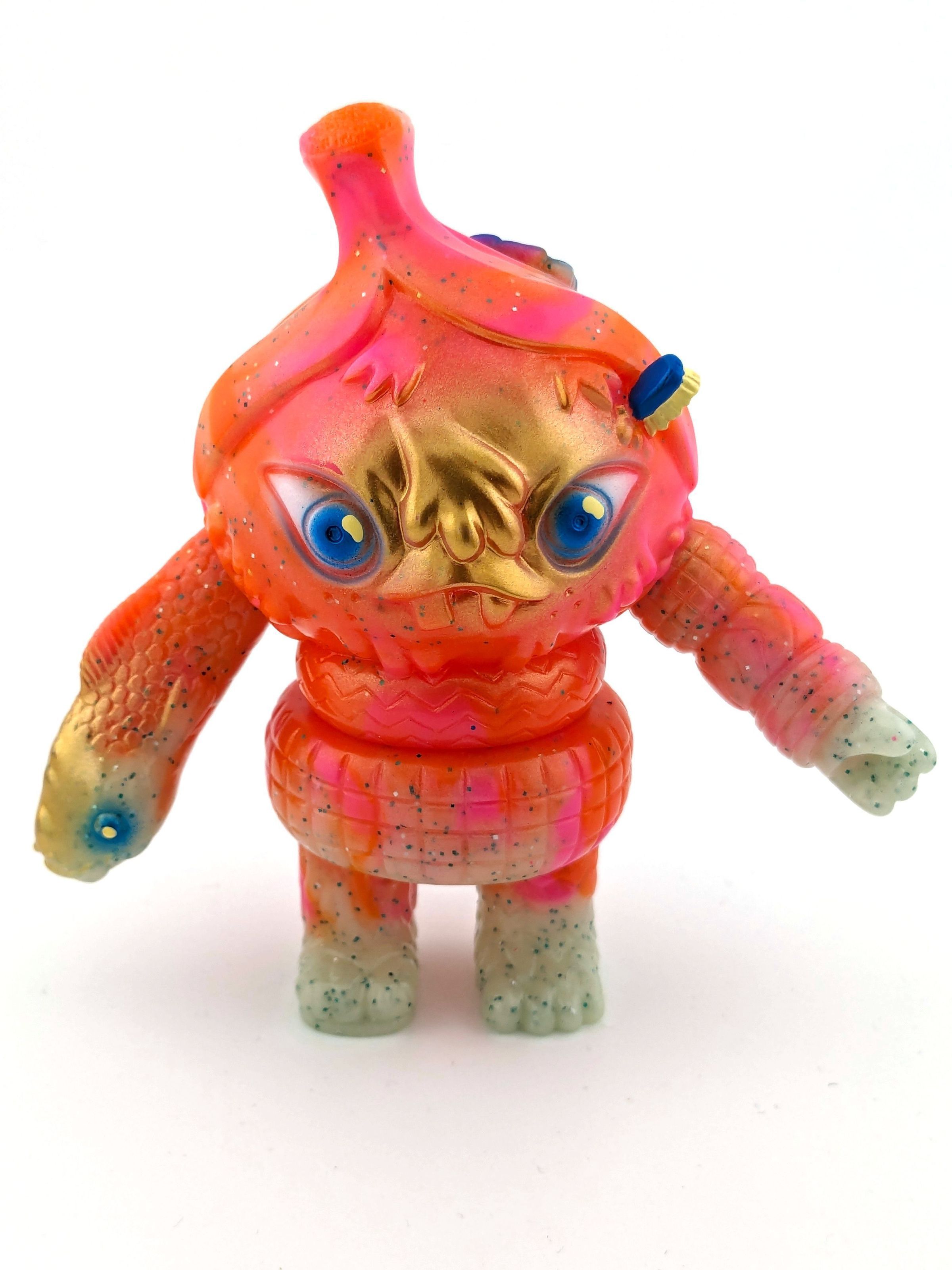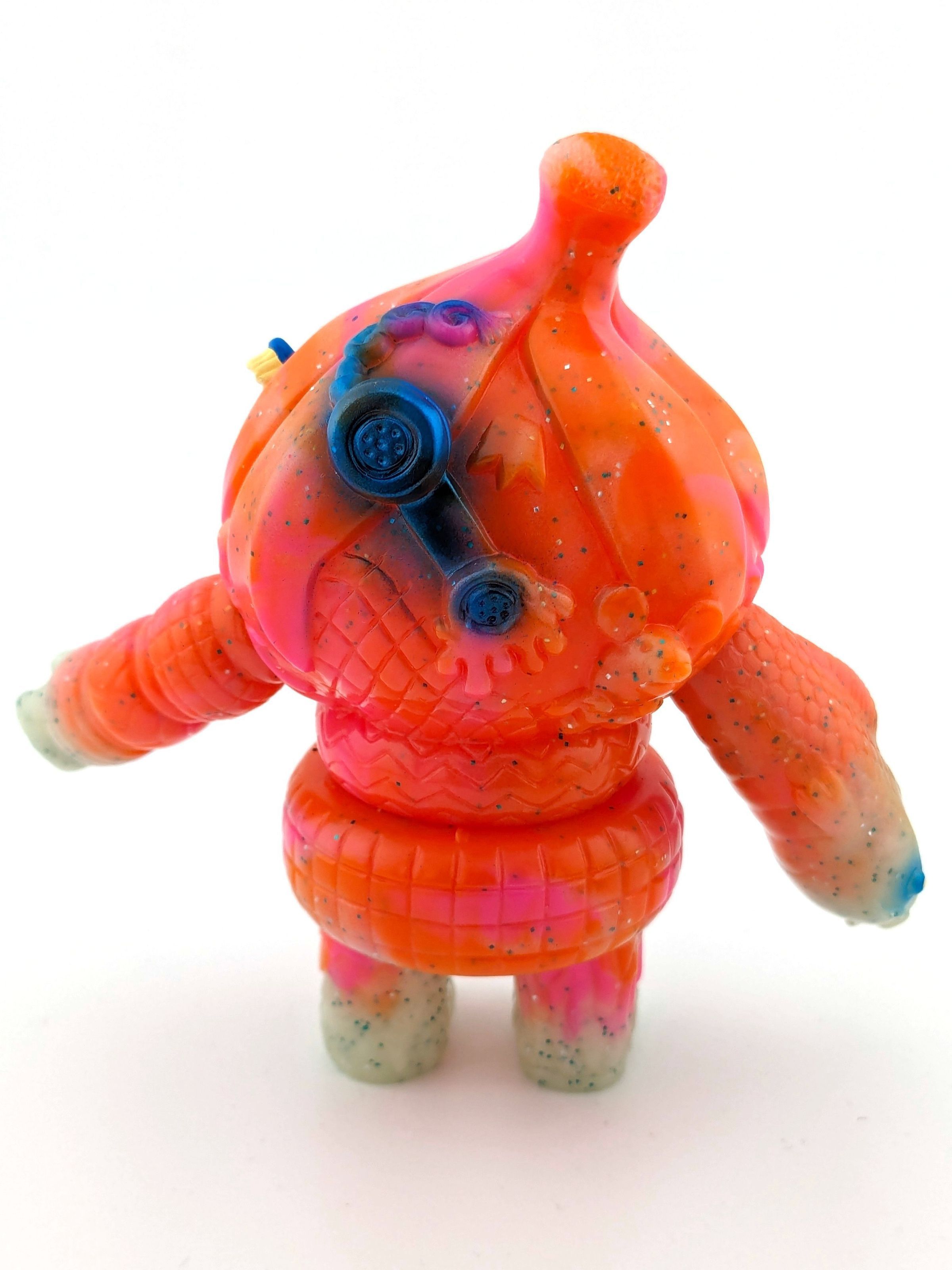 Marbled lame GID, pink, and orange vinyl with blue, gold, yellow and white paintMade/Created
