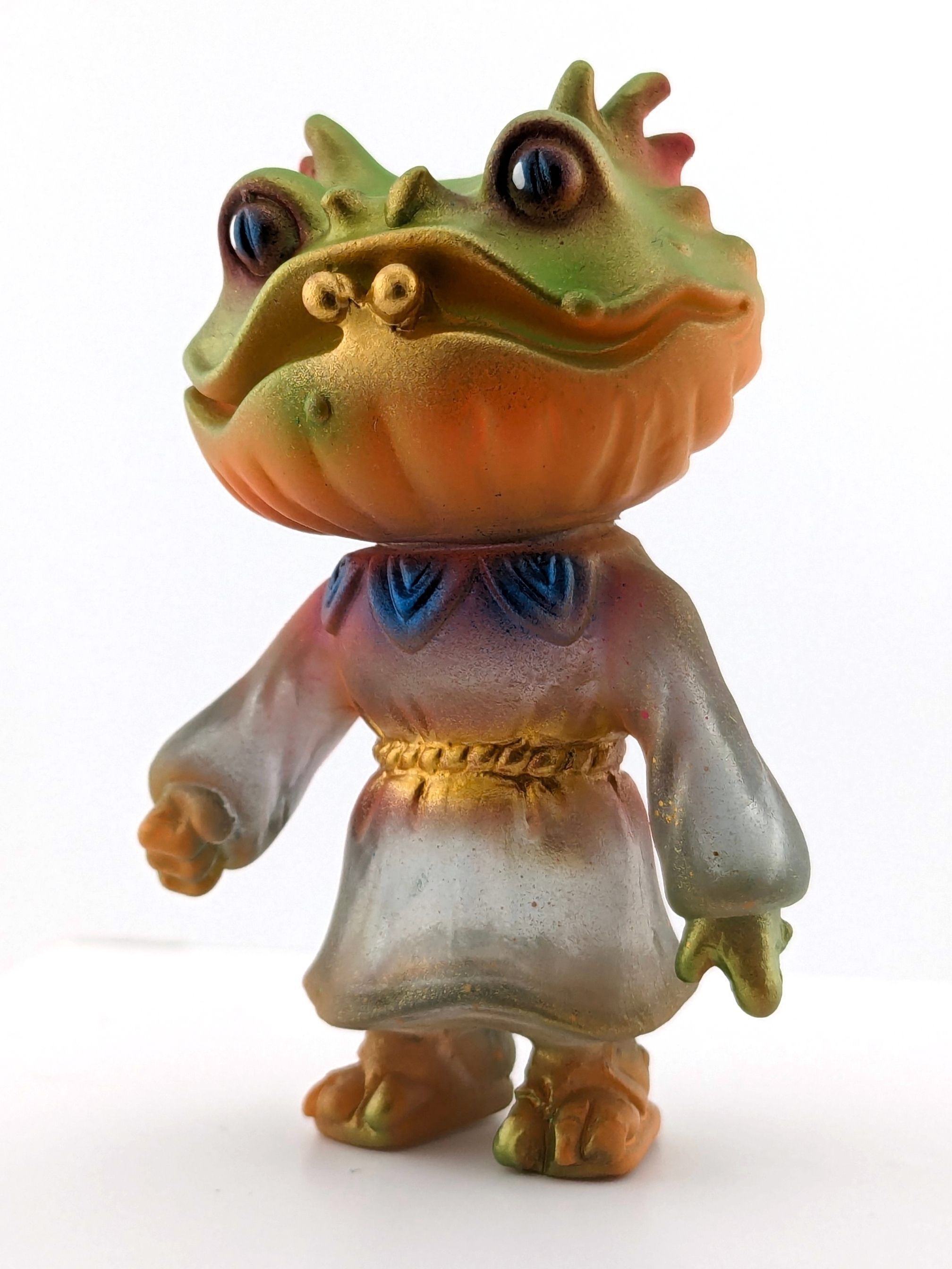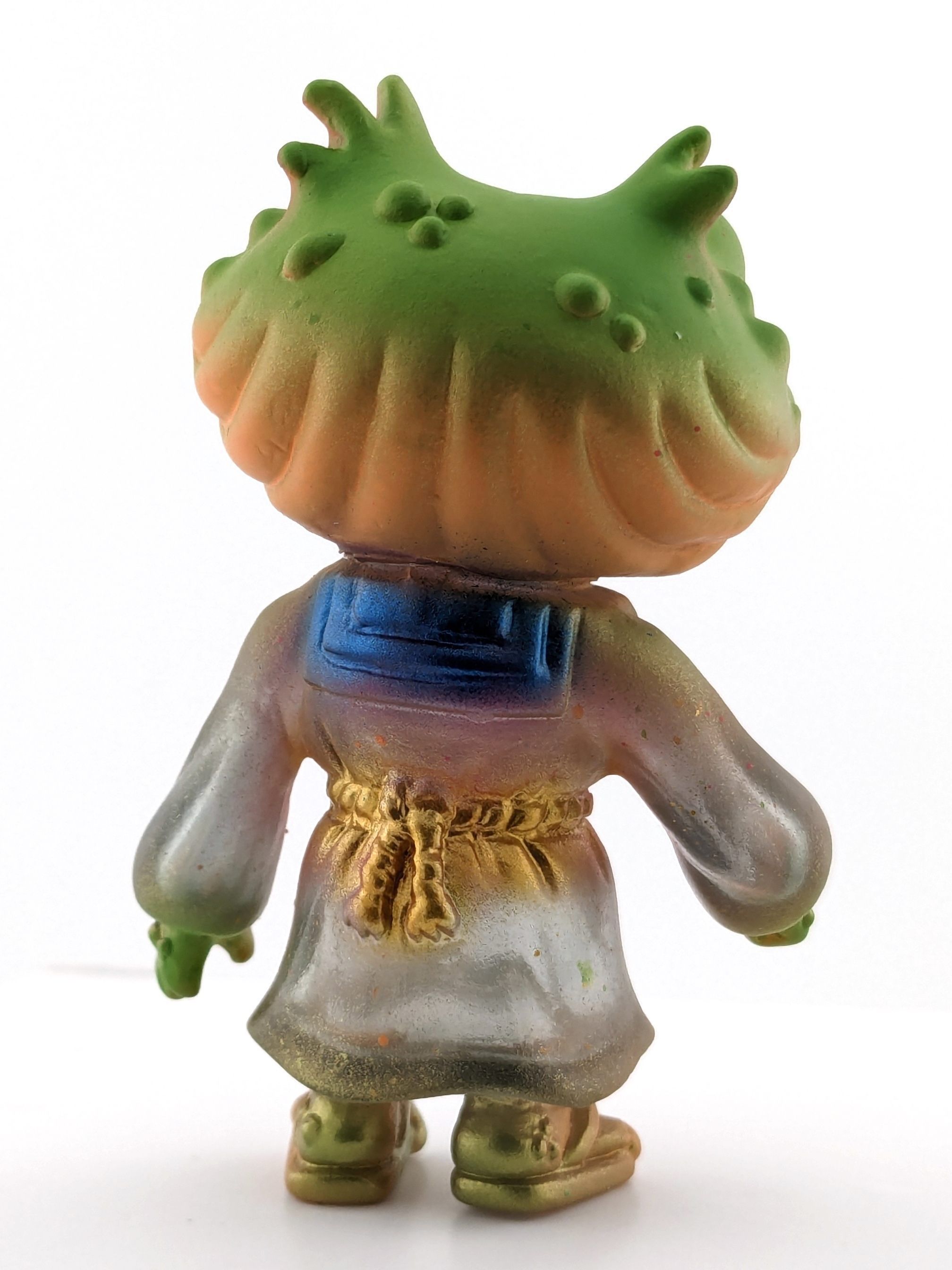 Trans gray vinyl with blue, green, gold, and black paint