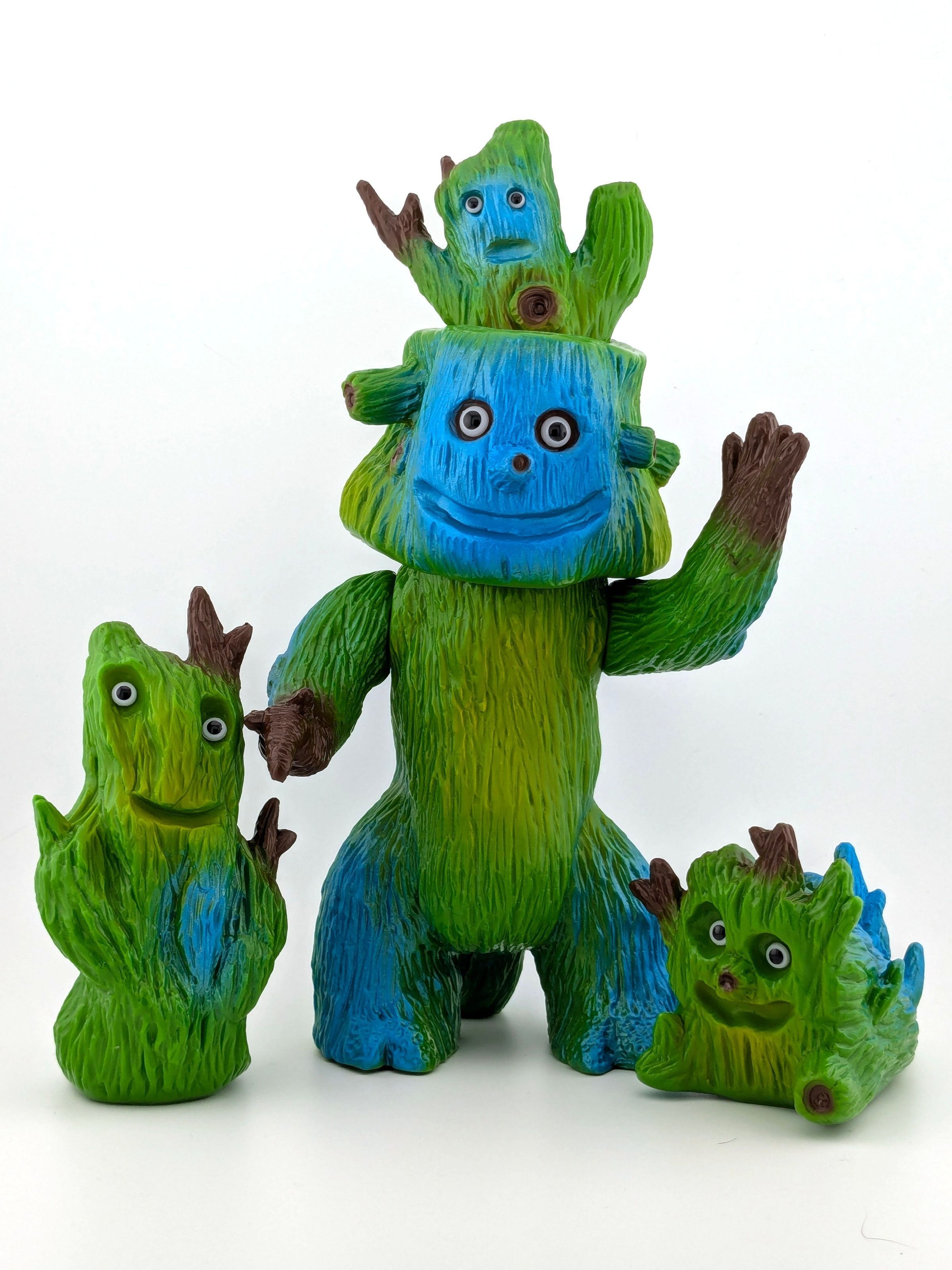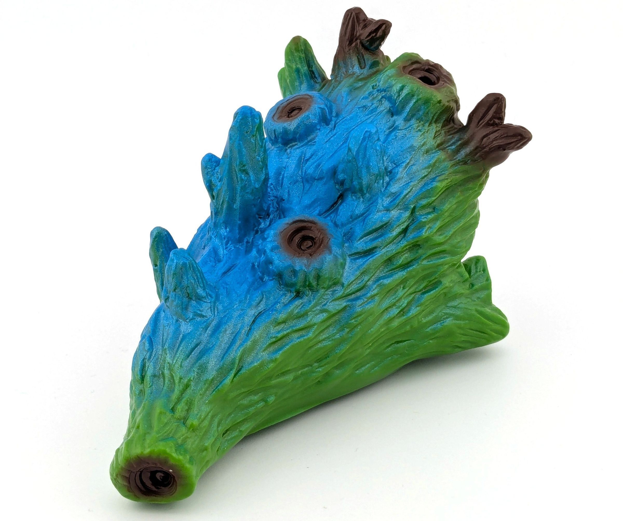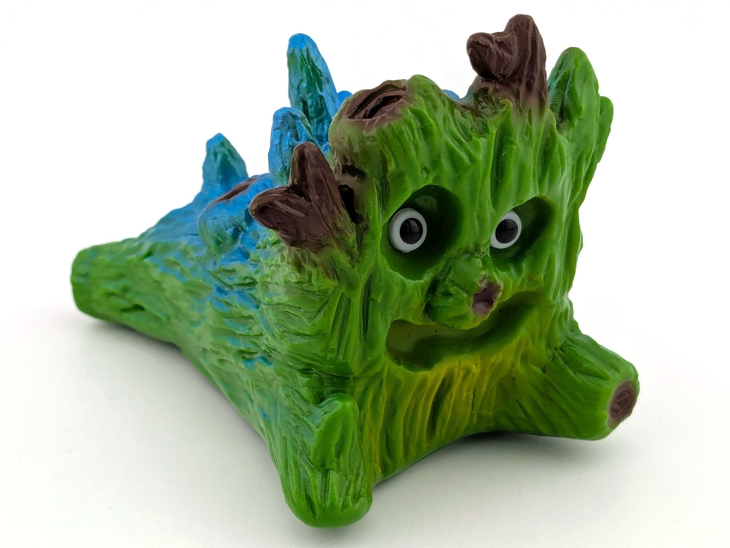Green vinyl with blue, brown, and light green paint. With doll eyes.
