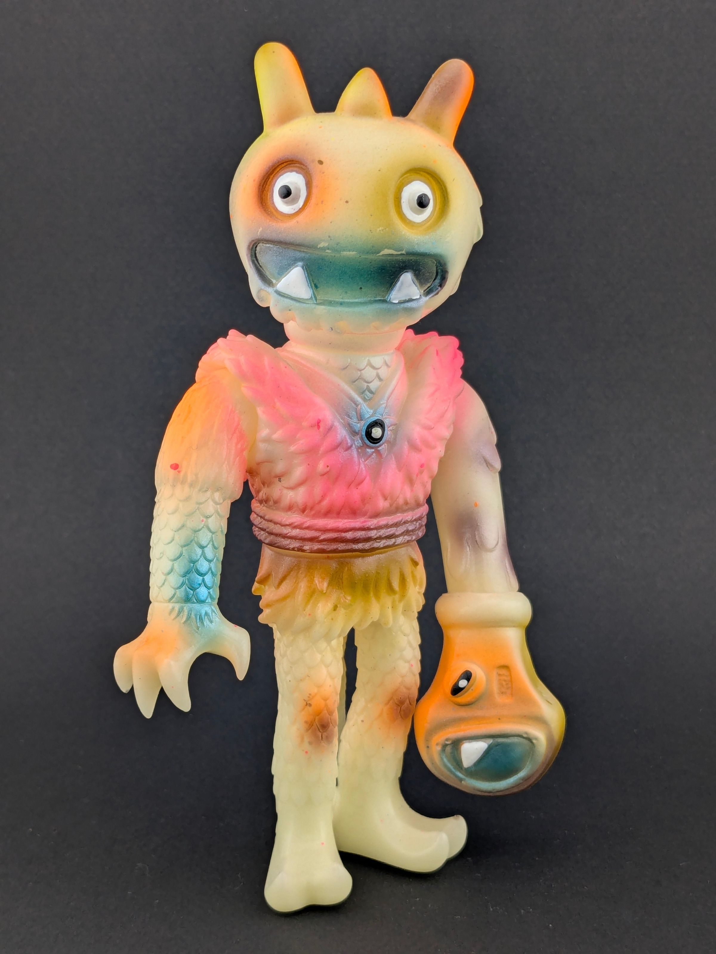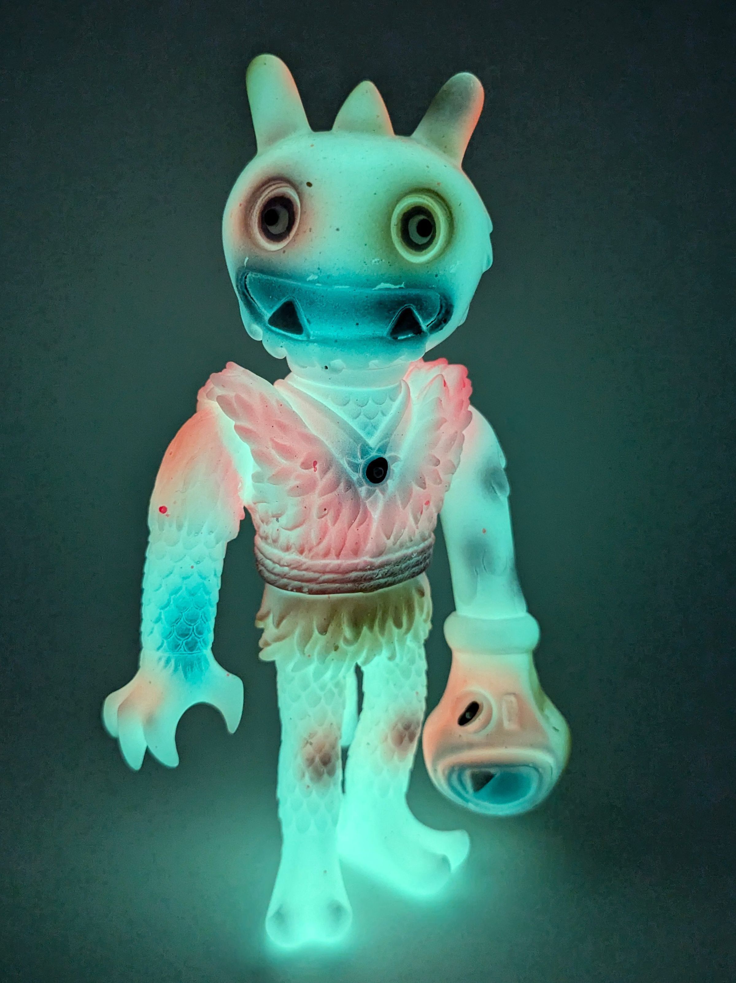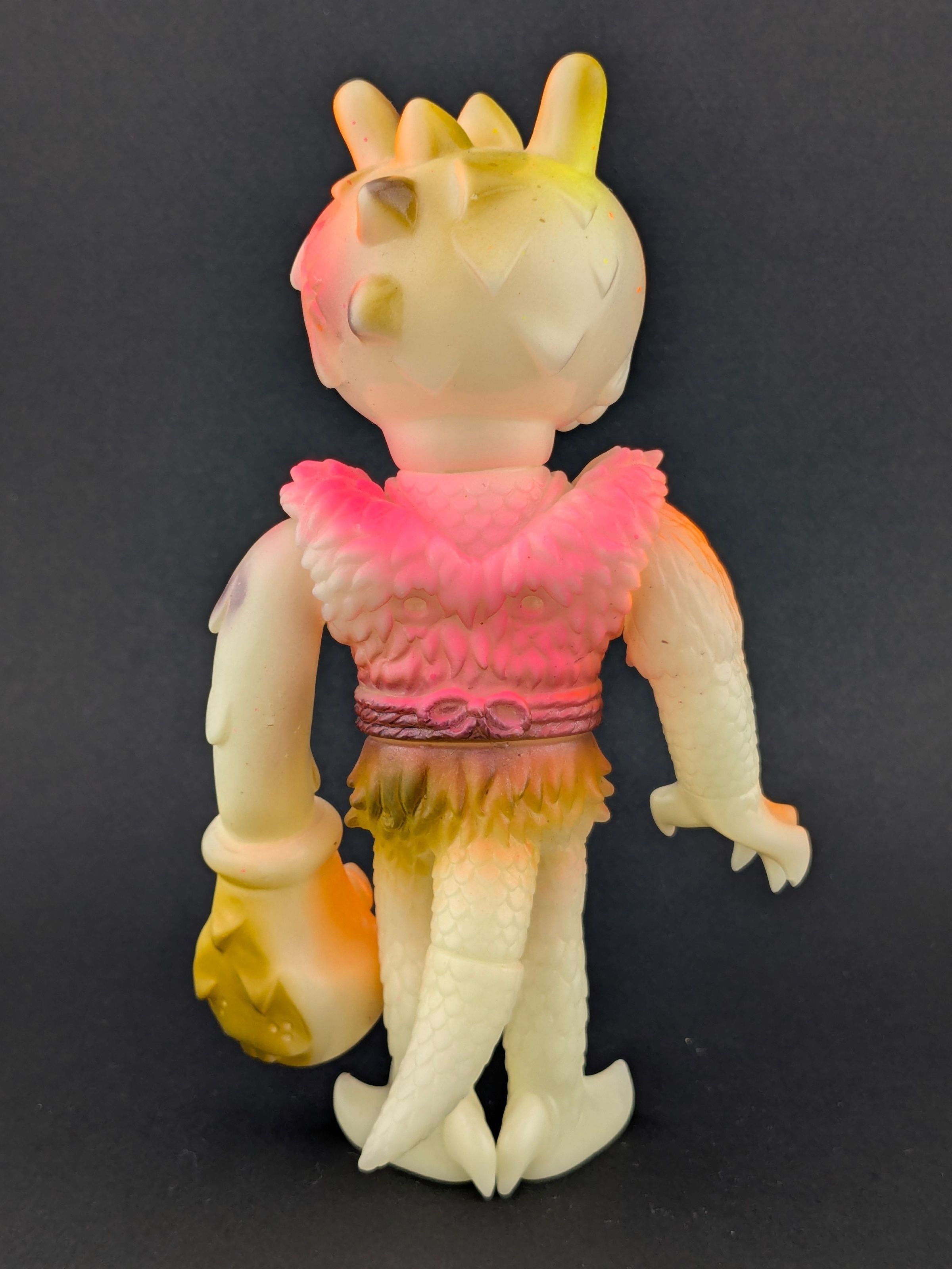 GID vinyl with orange, pink, brown, and metallic blue paint