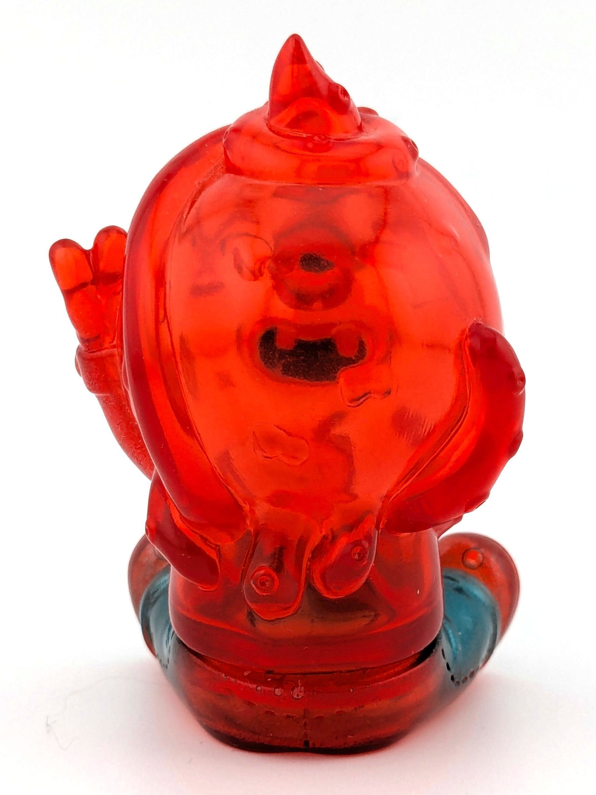 Trans red vinyl with blue, black, white, silver, and yellow paint