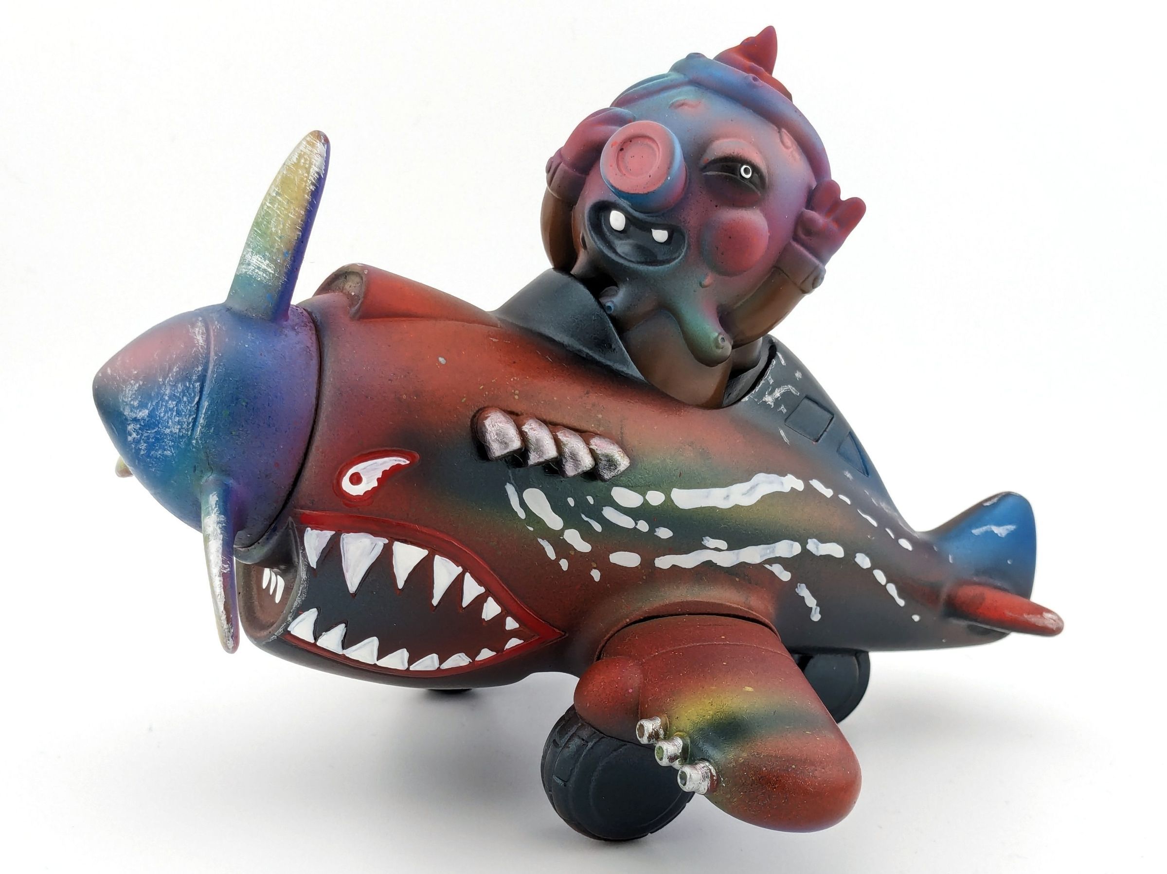 Black and blue vinyl with red, pink, gold, white, blue, black, and purple paintMade/Created