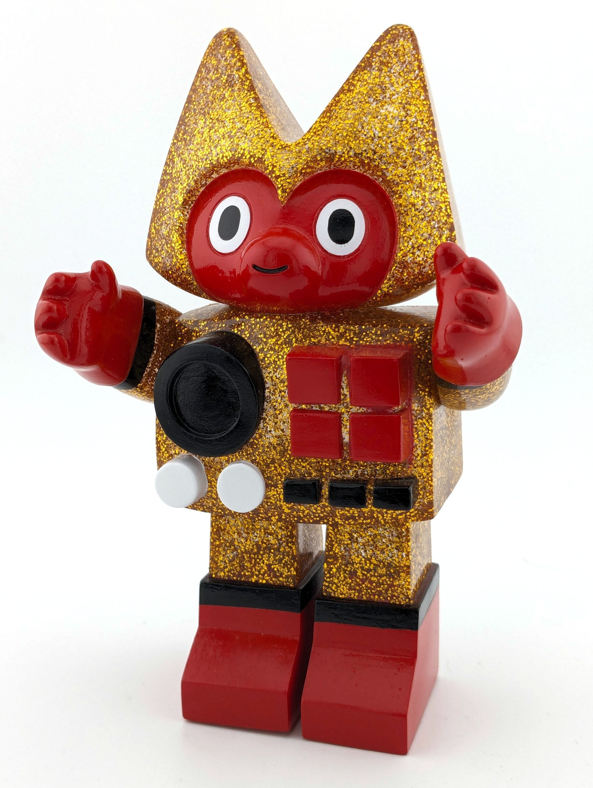 Gold hyper lame vinyl with red, black, and white paint