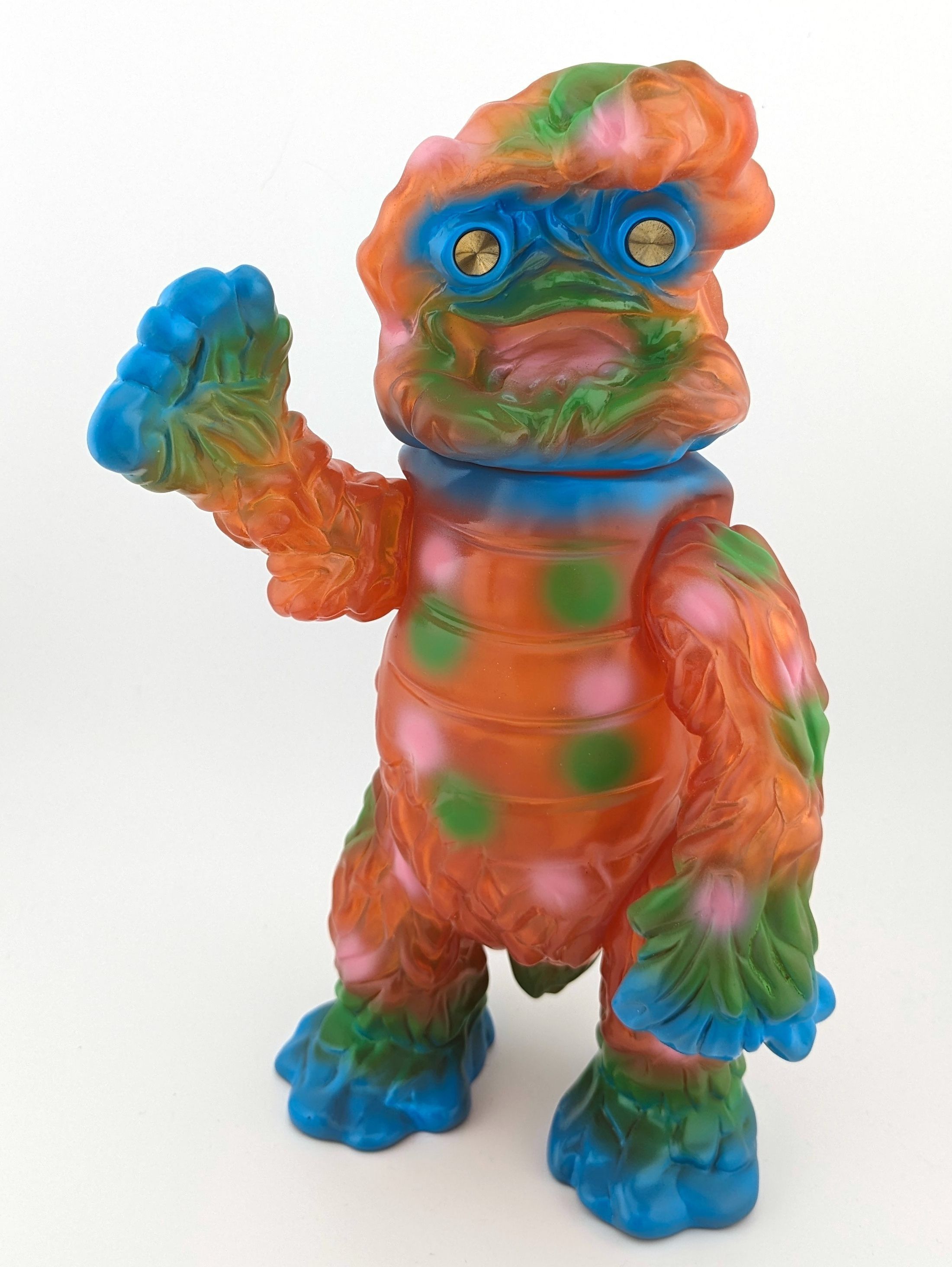 Rootbeer vinyl with green, blue, and pink paint; with metal disc eyes