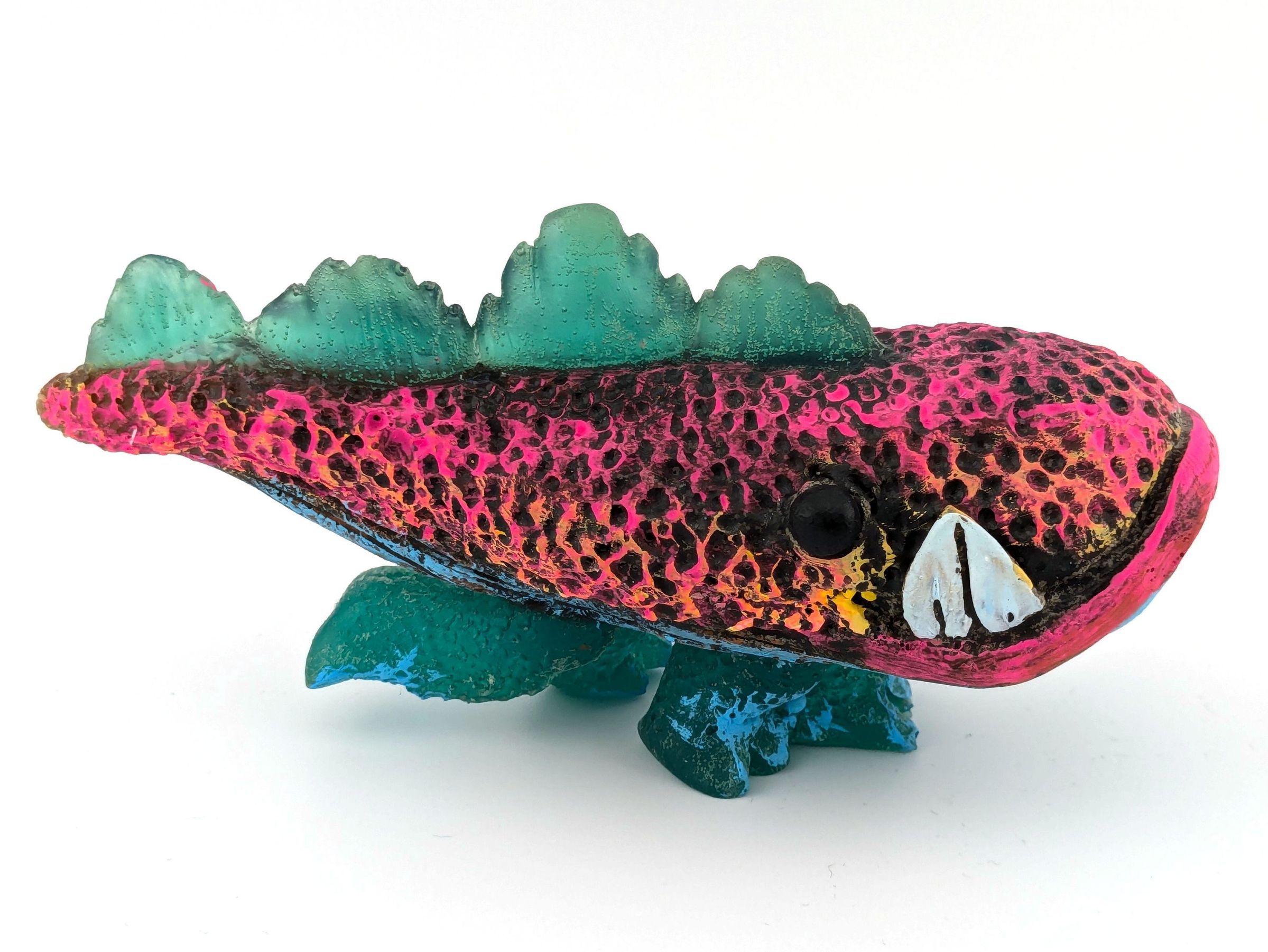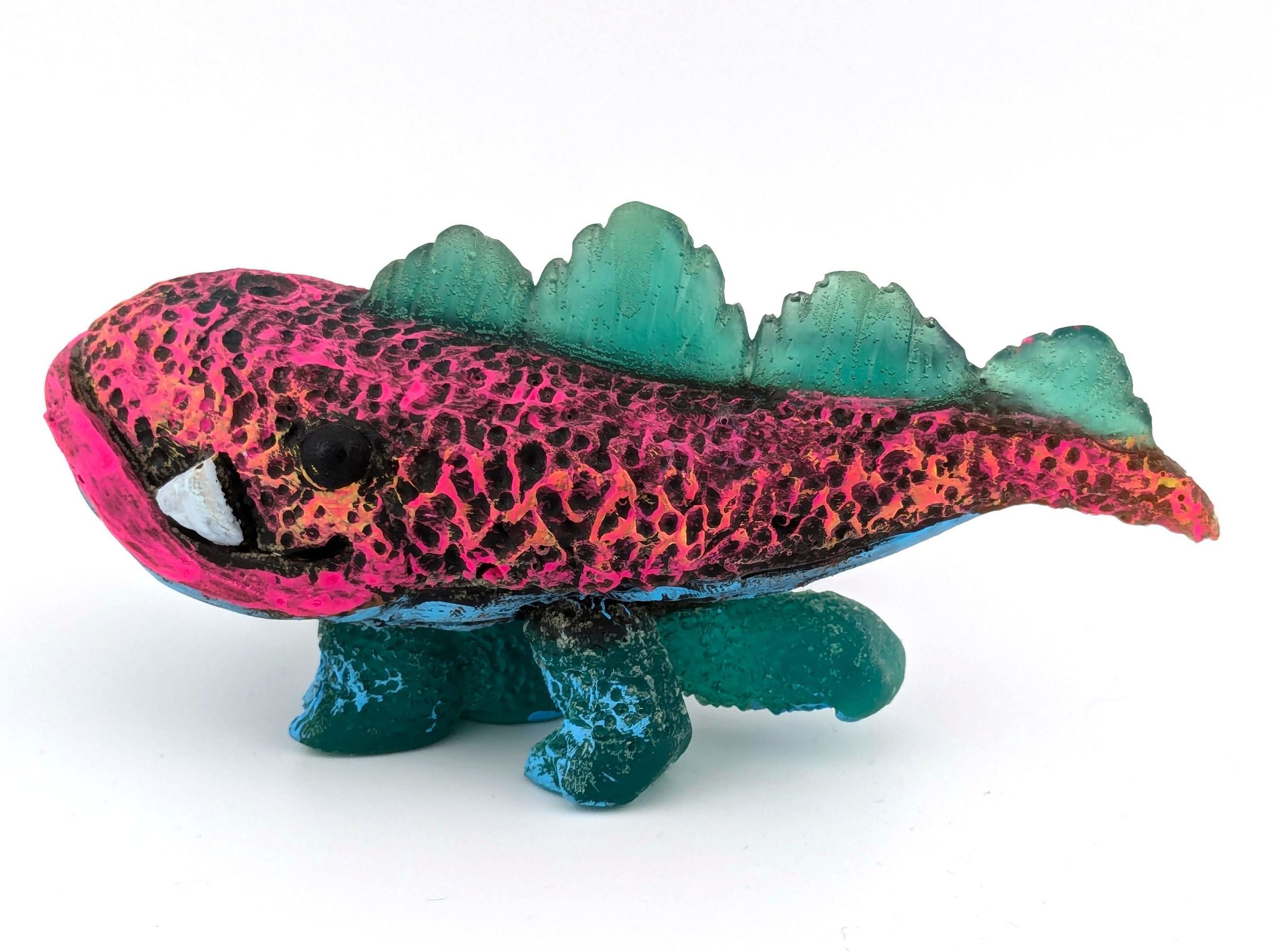 Green resin with pink and turquoise paint