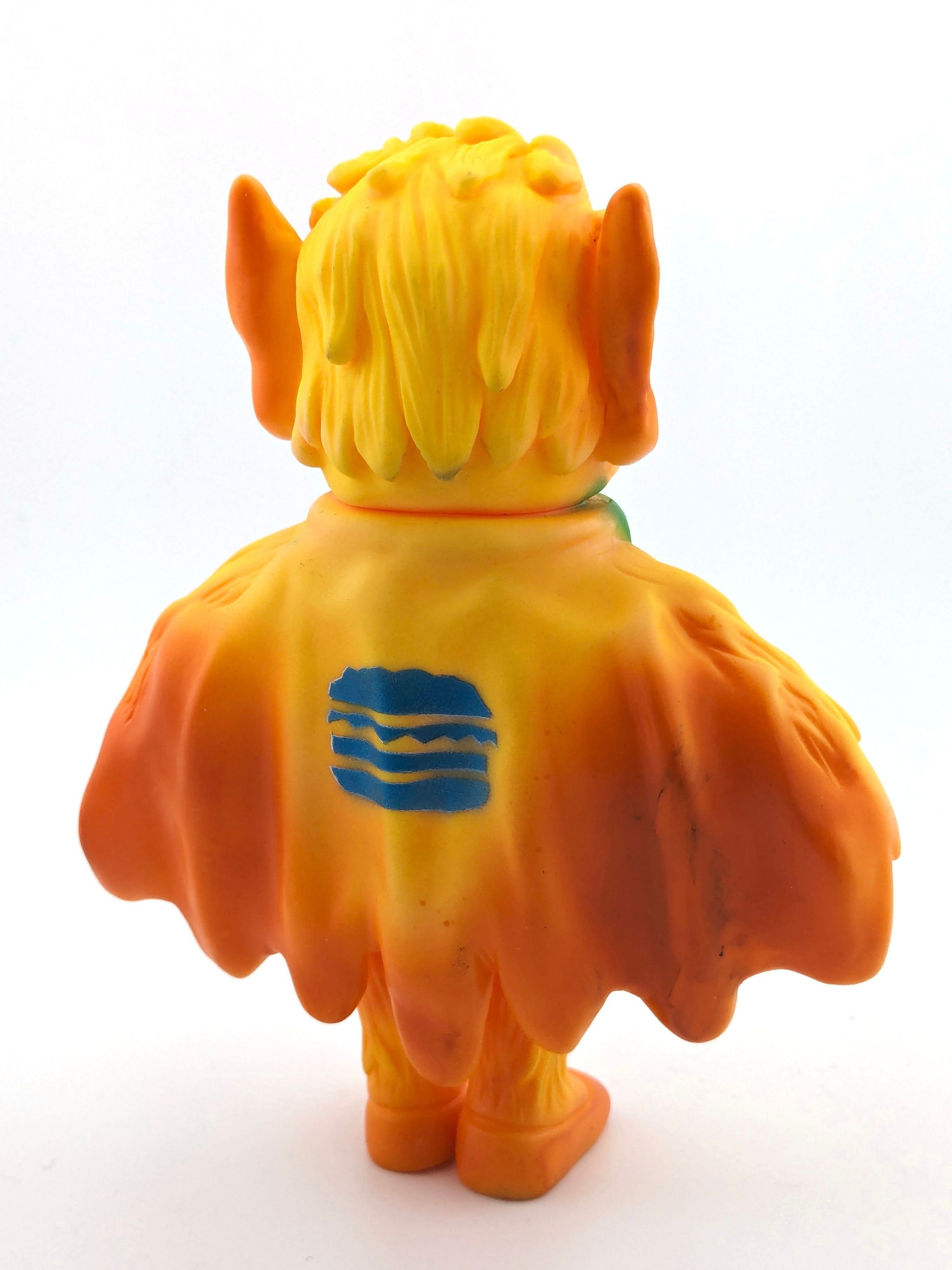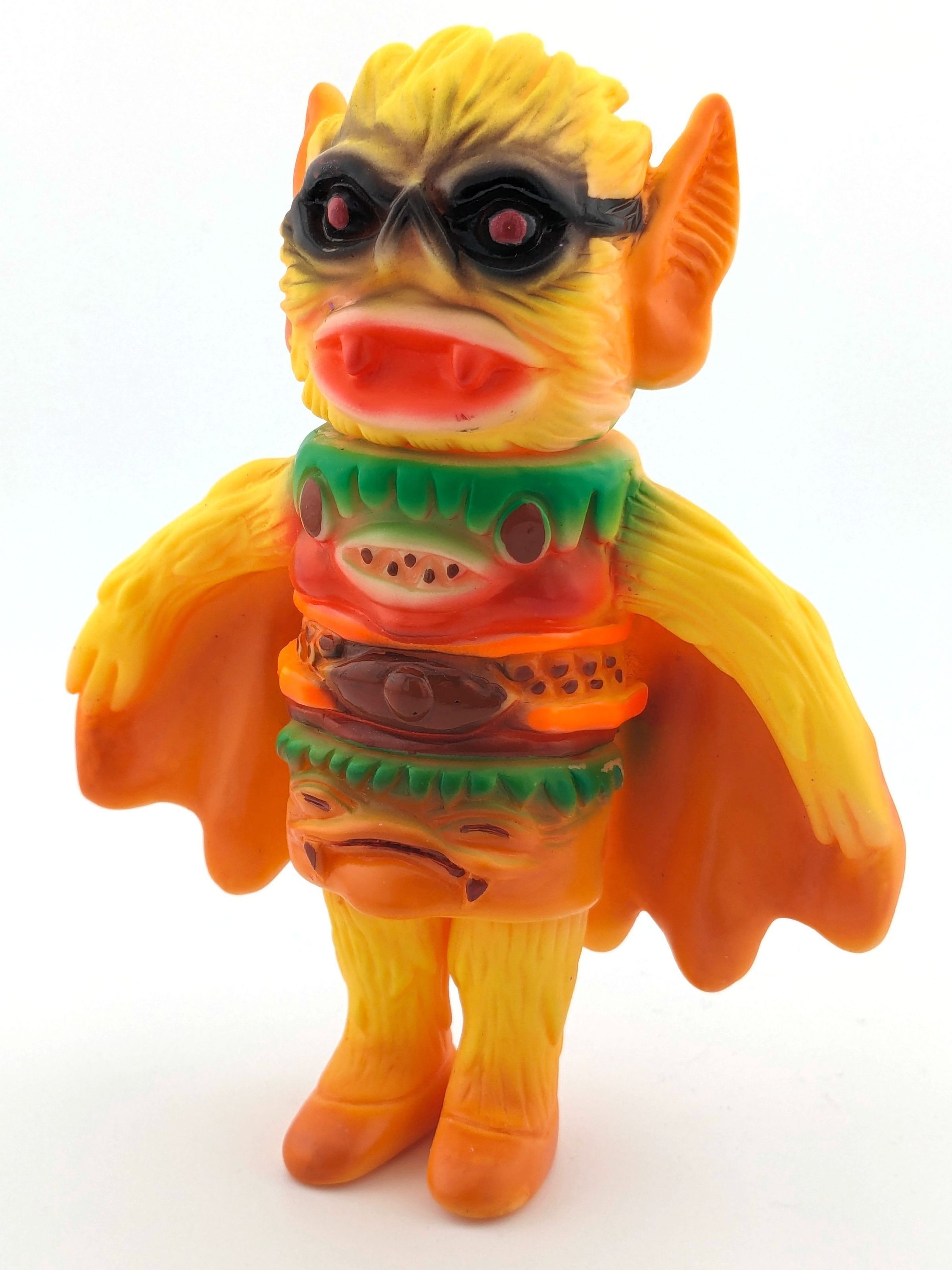 Yellow vinyl with black, orange, green, brown, and white paintMade/Created
