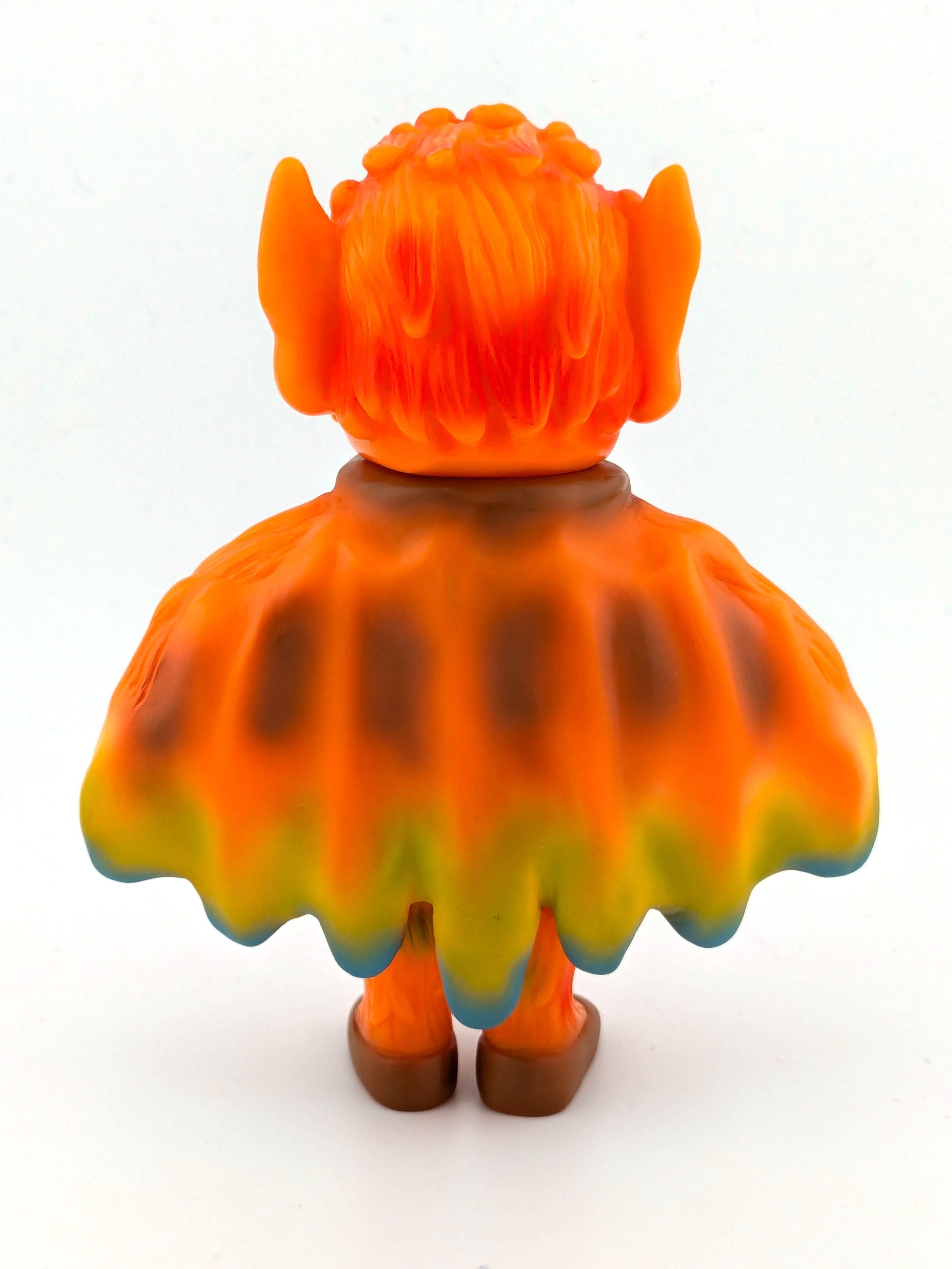 Orange vinyl with blue, yellow, brown, red, black, and white paint