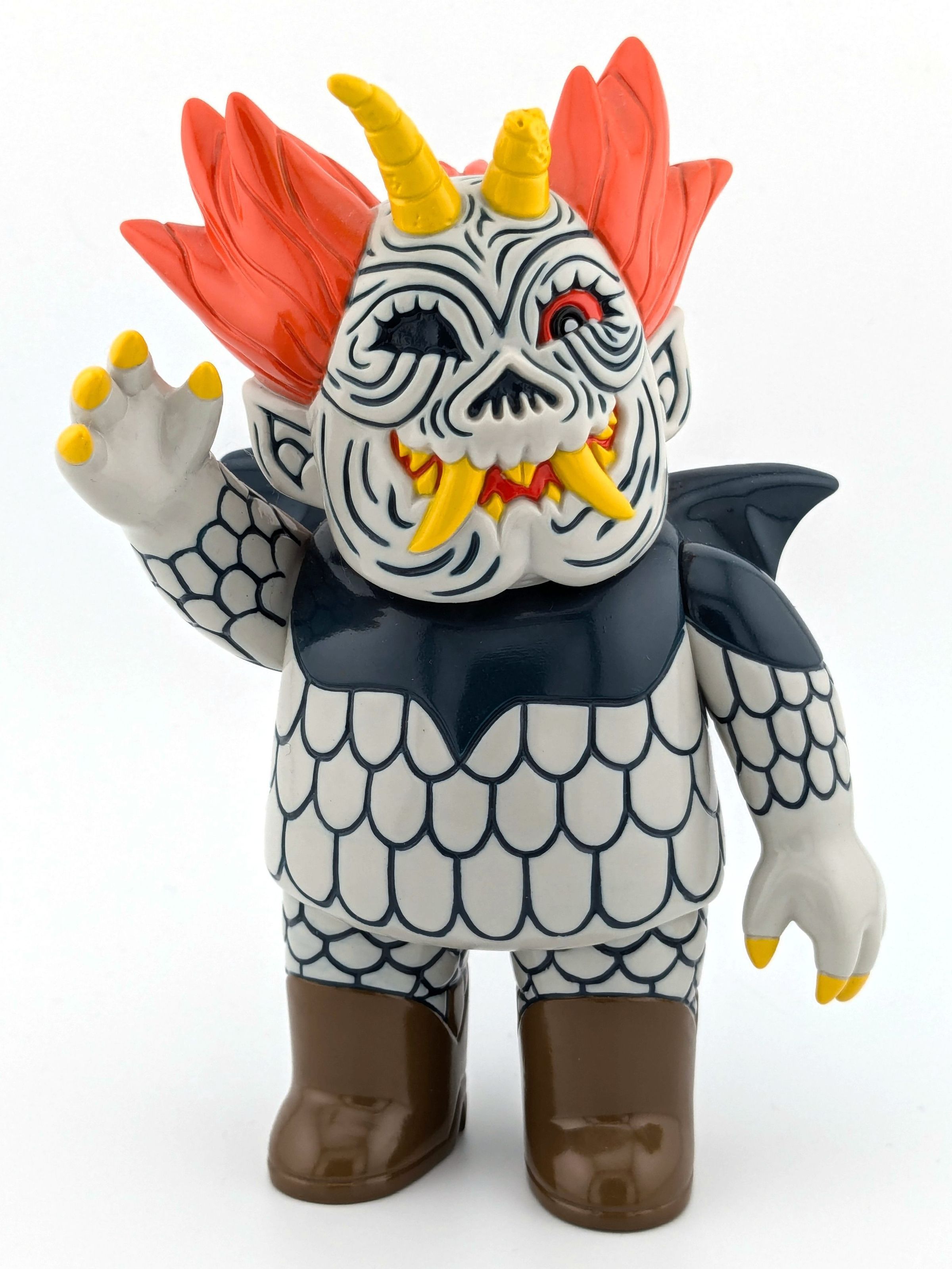 White vinyl with orange, dark blue, and brown paintMade/Created