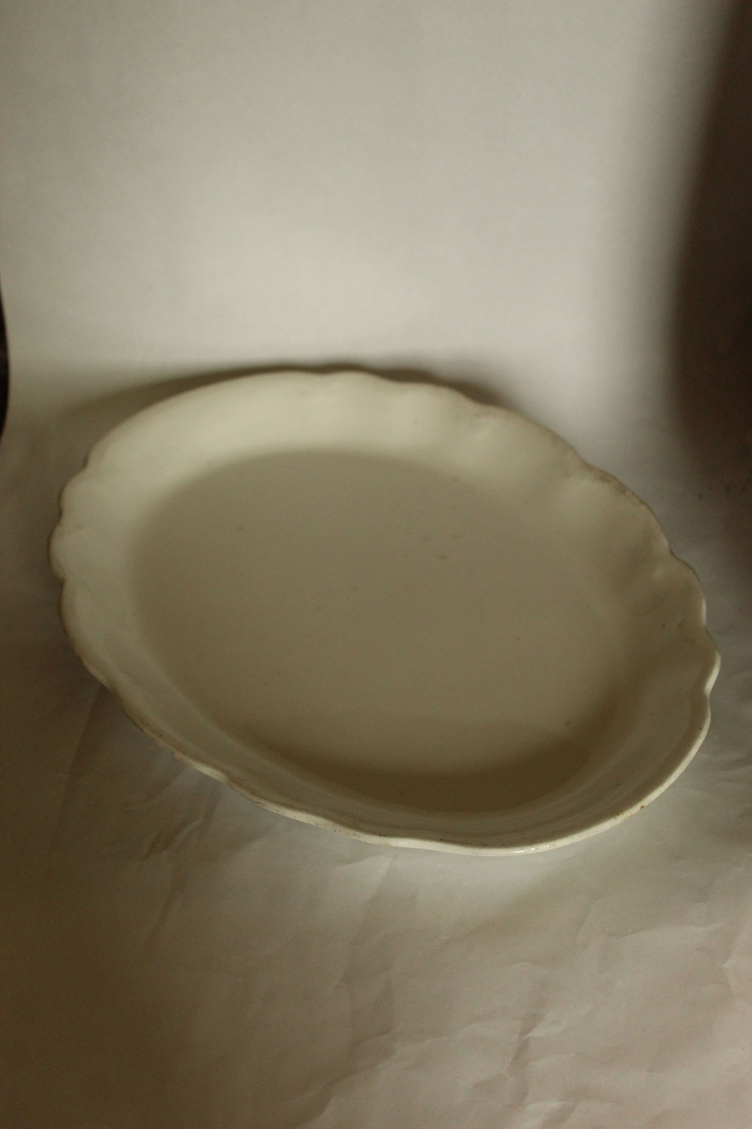 Oval serving dish, white porcelain, stamped with Vodrey ChinaCataloged By