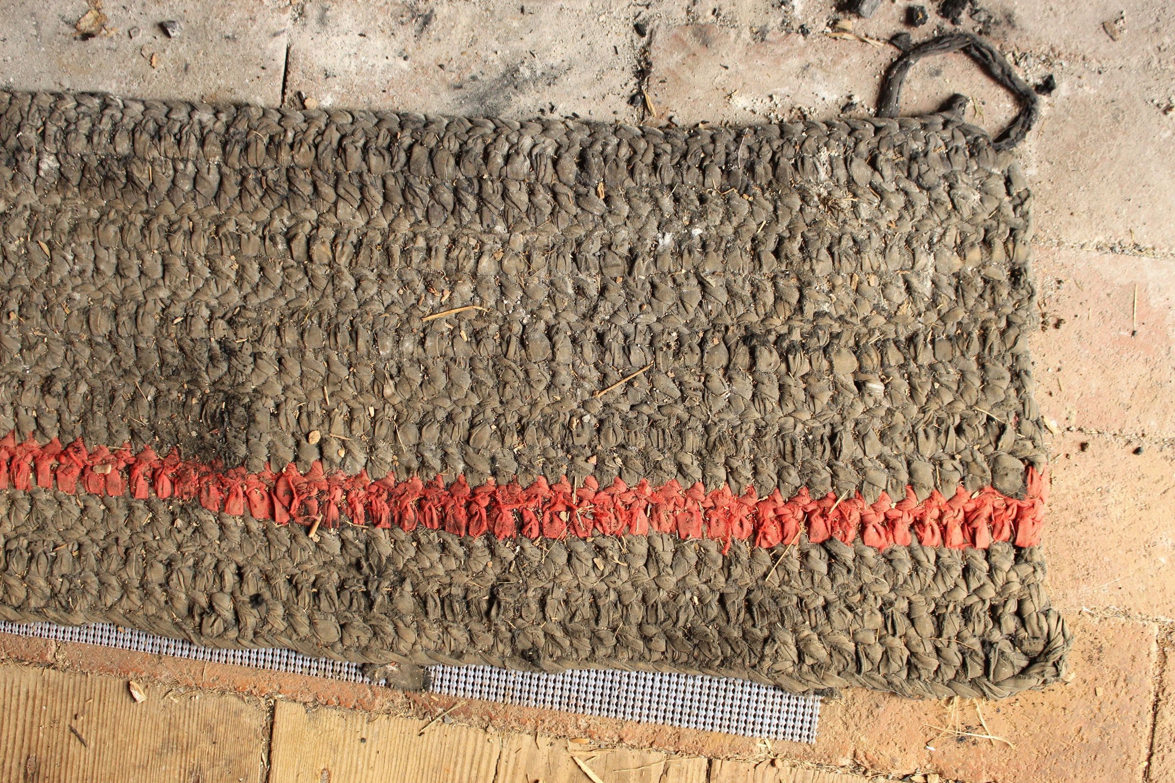long narrow rug, black and red, knottedTextile Type