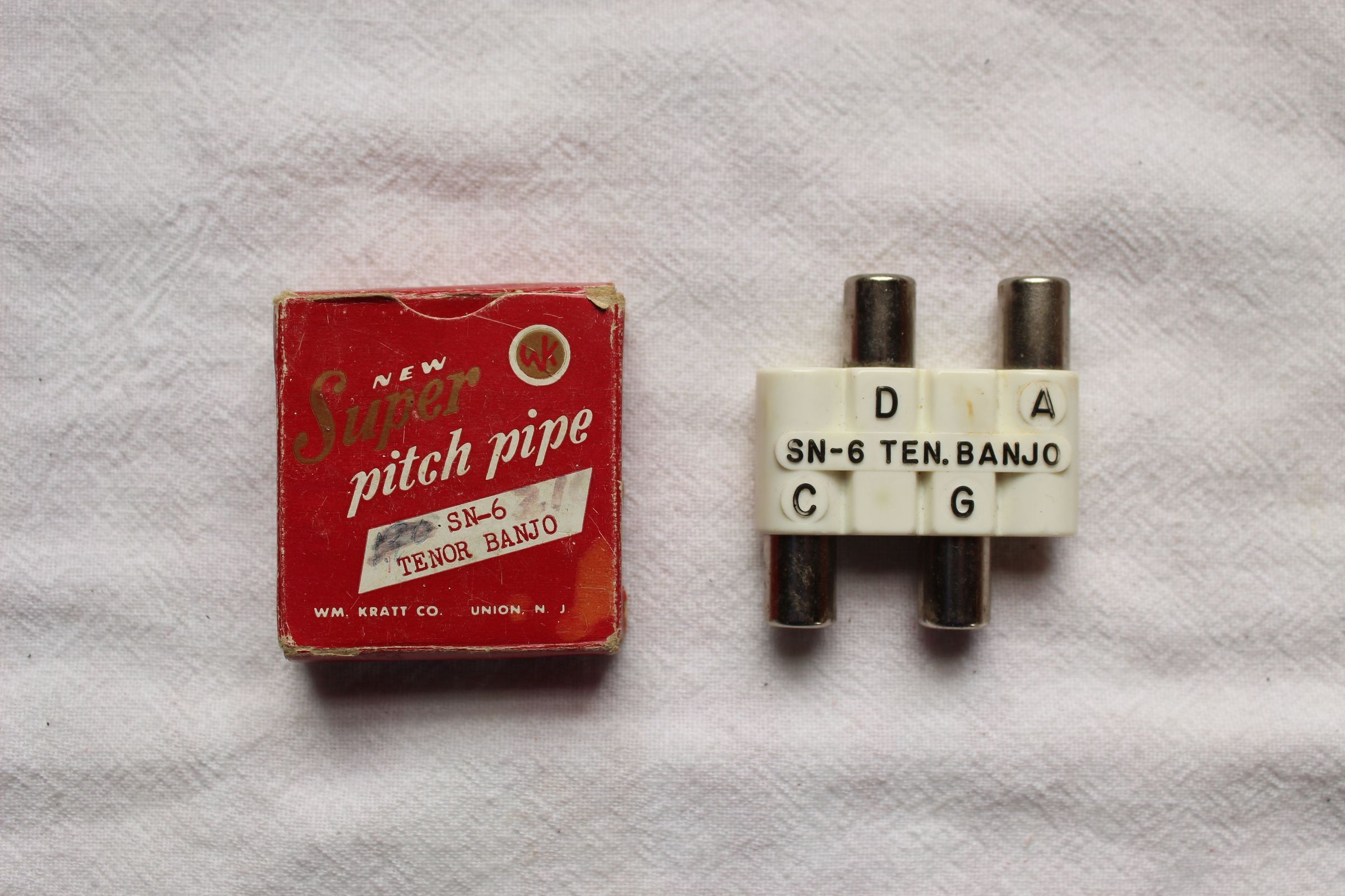 4-note pitch pipe including C, D, G, A New Super Pitch Pipe SN-6 Tenor Banjo WM. Kratt Co., Union, N.J.