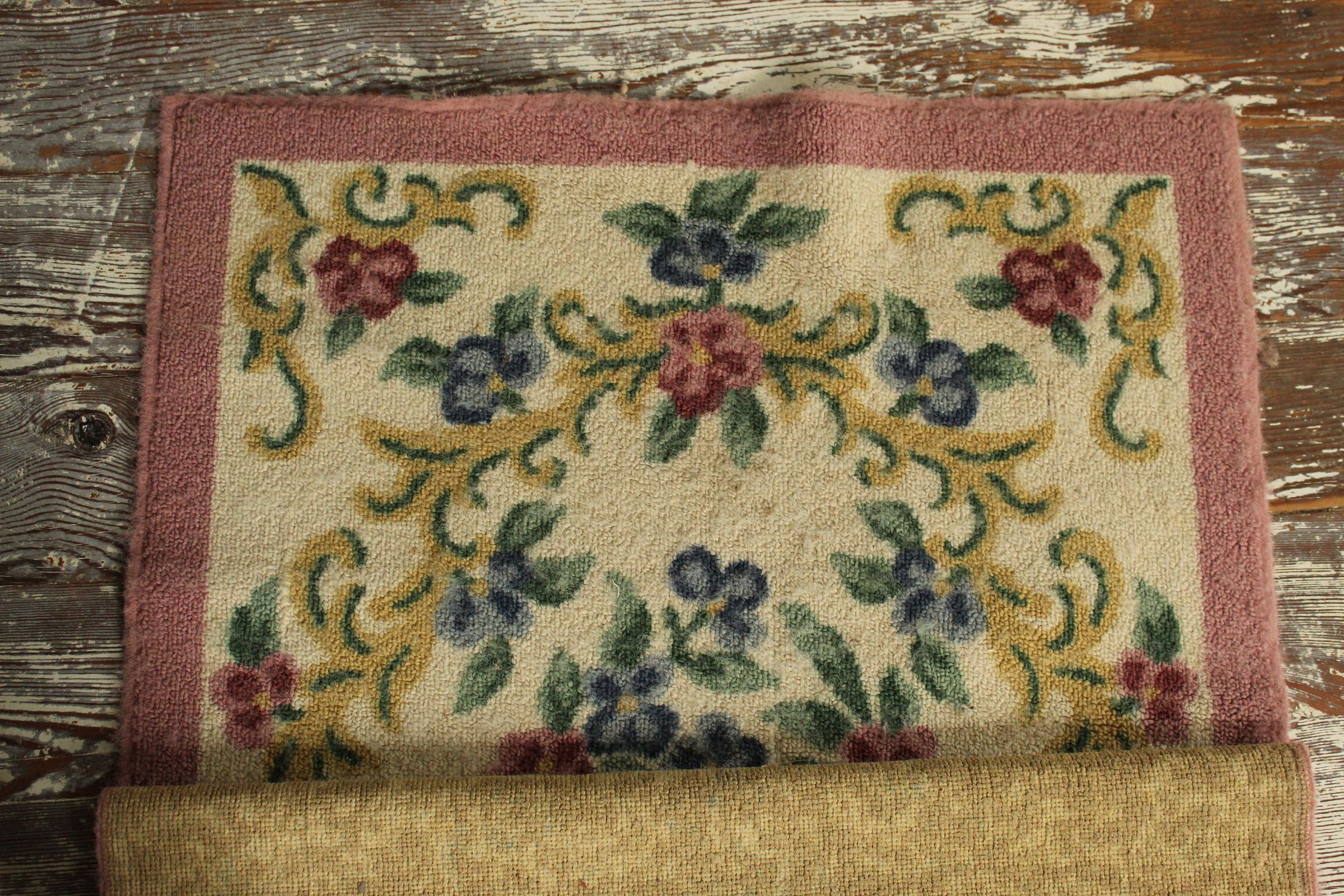 Pair of rugs with pink and blue flowers and pink edgesTextile Type