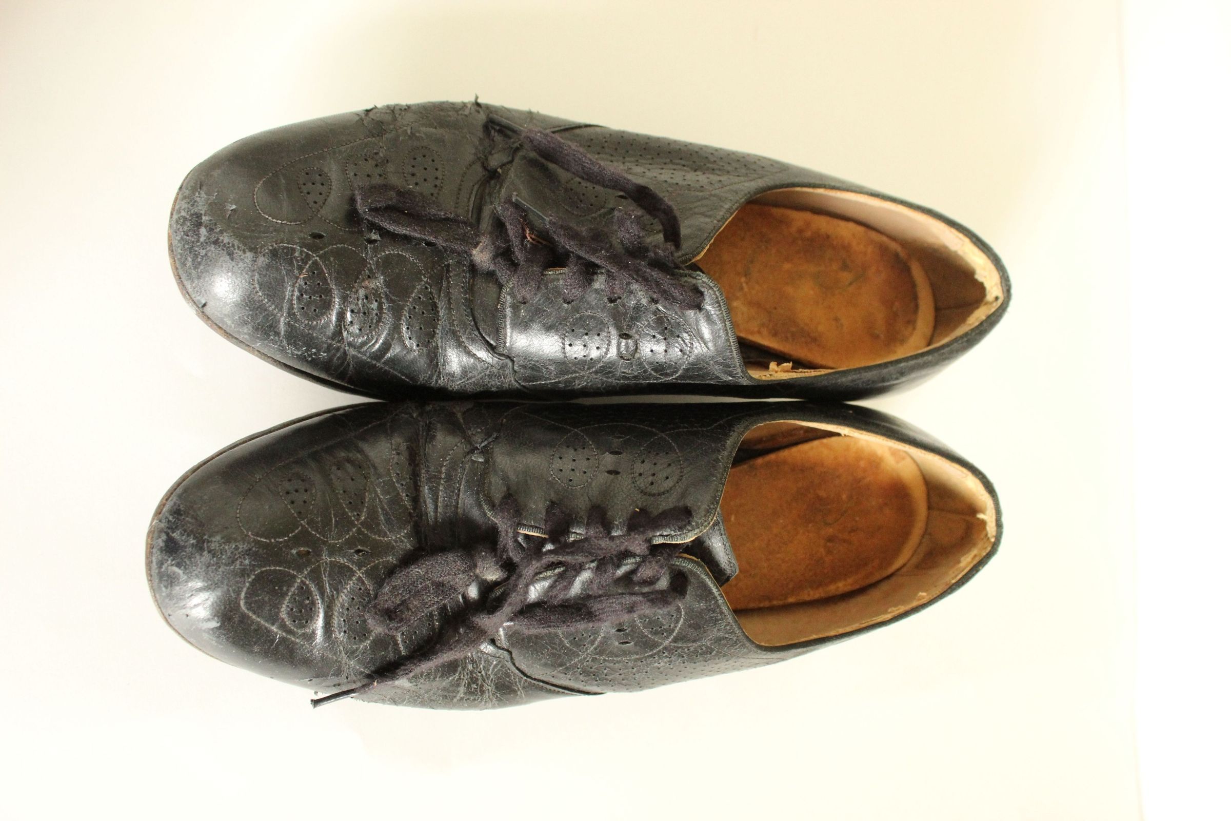 Heeled black lace-up shoes. Say "Kerrybrooke" "Sears Roebuck and Company" and "Upper & Sole are Leather, Other Parts Quality" on the insole and "Speedway" on the heel.Cataloged By
