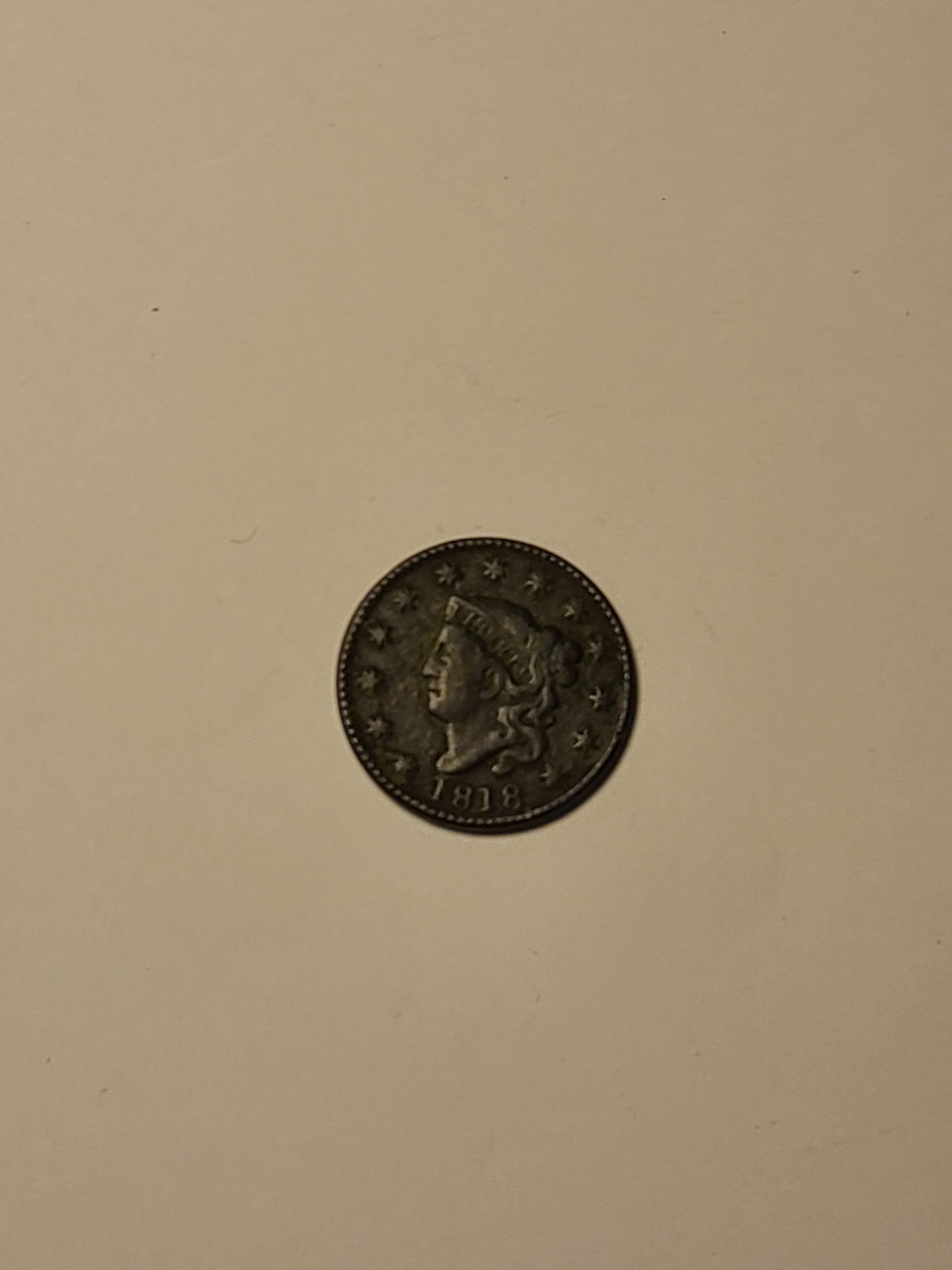 1818 United States of America one cent coin with Lady Liberty on itCataloged By