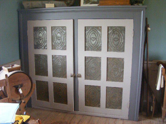 pie safe with two doors made of 12 (6 each) pierced tin panels, with 4 shelvesUse