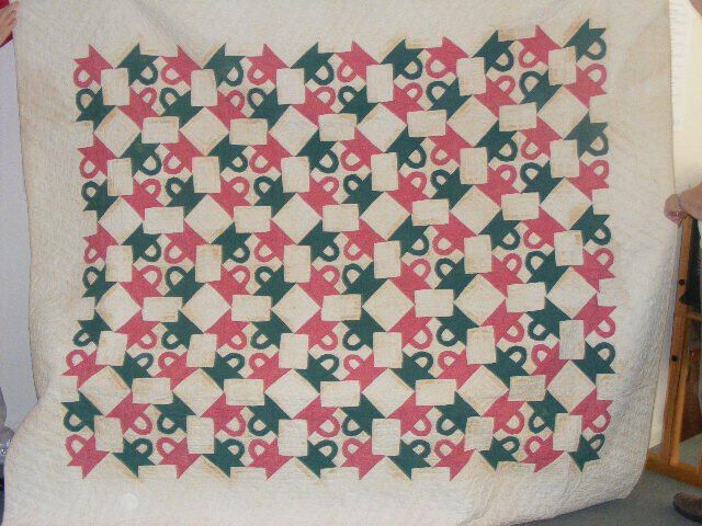 The brick home where this quilt was constructed still stands (c. 1800-1820). Quilt colors and fabric pattern date it to 1880-1900. It is both hand and machine sewn, indicating family was wealthy enough to buy a sewing machine in the 1880s. Seven stitches per inch of quilting.