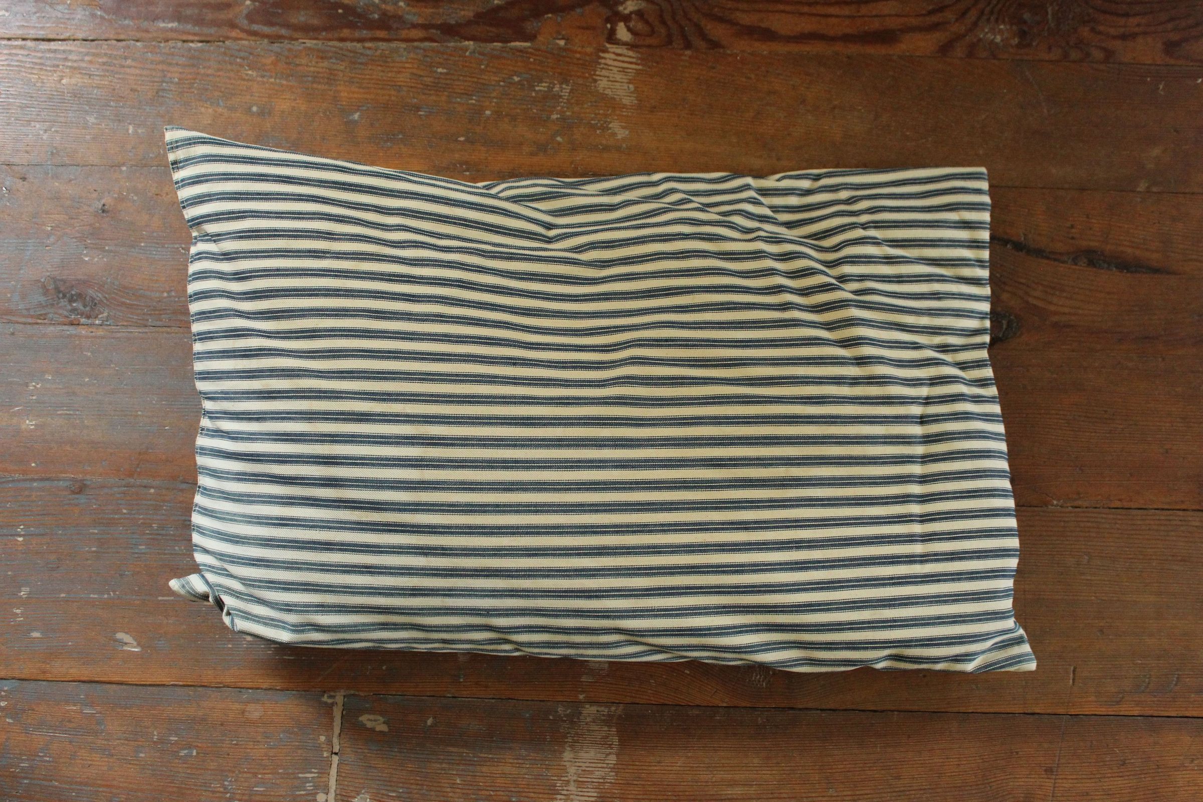 ticking pillow filled with chicken feathers from Miller family flock