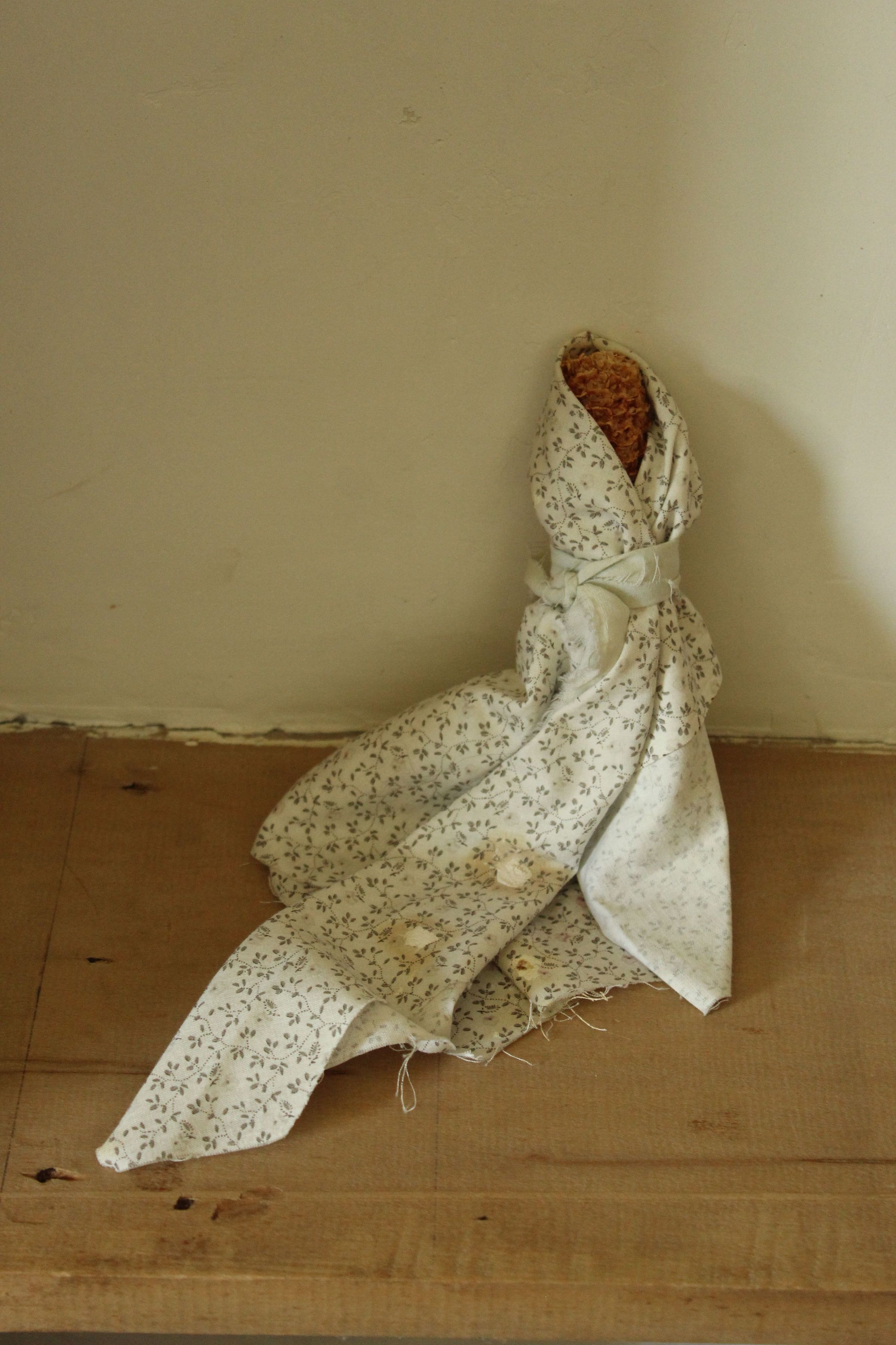 cornhusk baby doll wrapped in patterned white cotton cloth