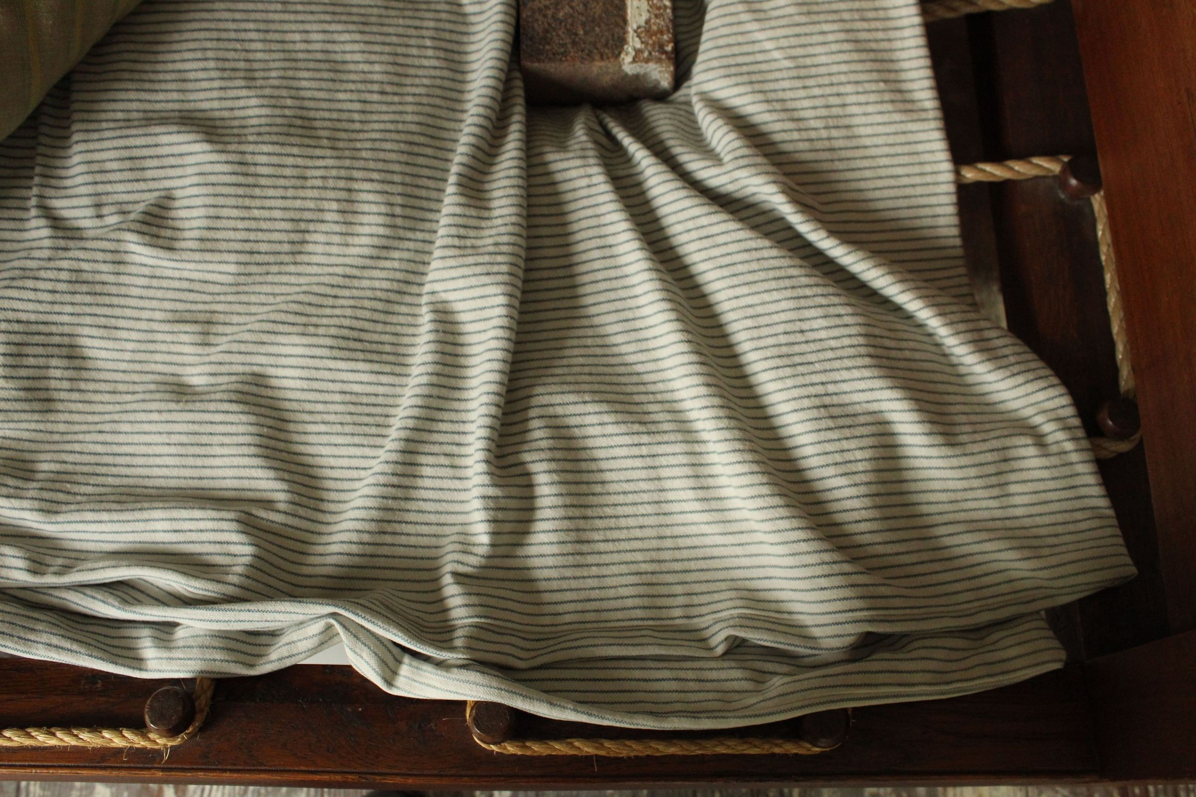 Pair of blue and white striped ticking mattress covers