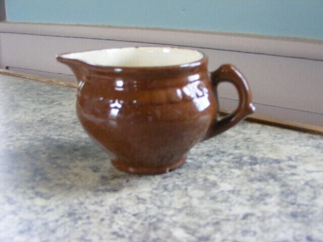 Small brown cream pitcher, pottery