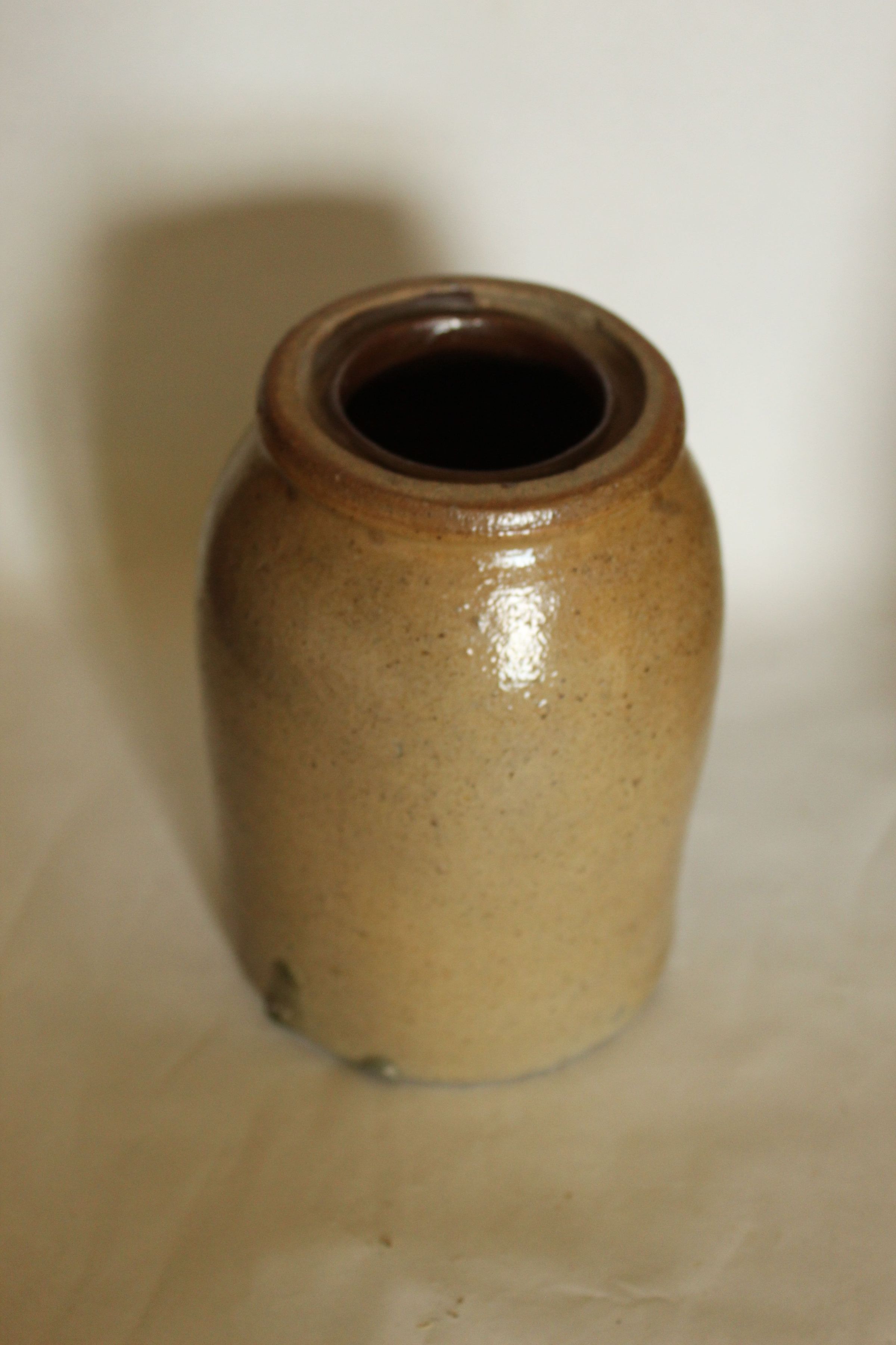 Crock with mouth and shoulder, ledge on inside, 3 chips off lipCataloged By