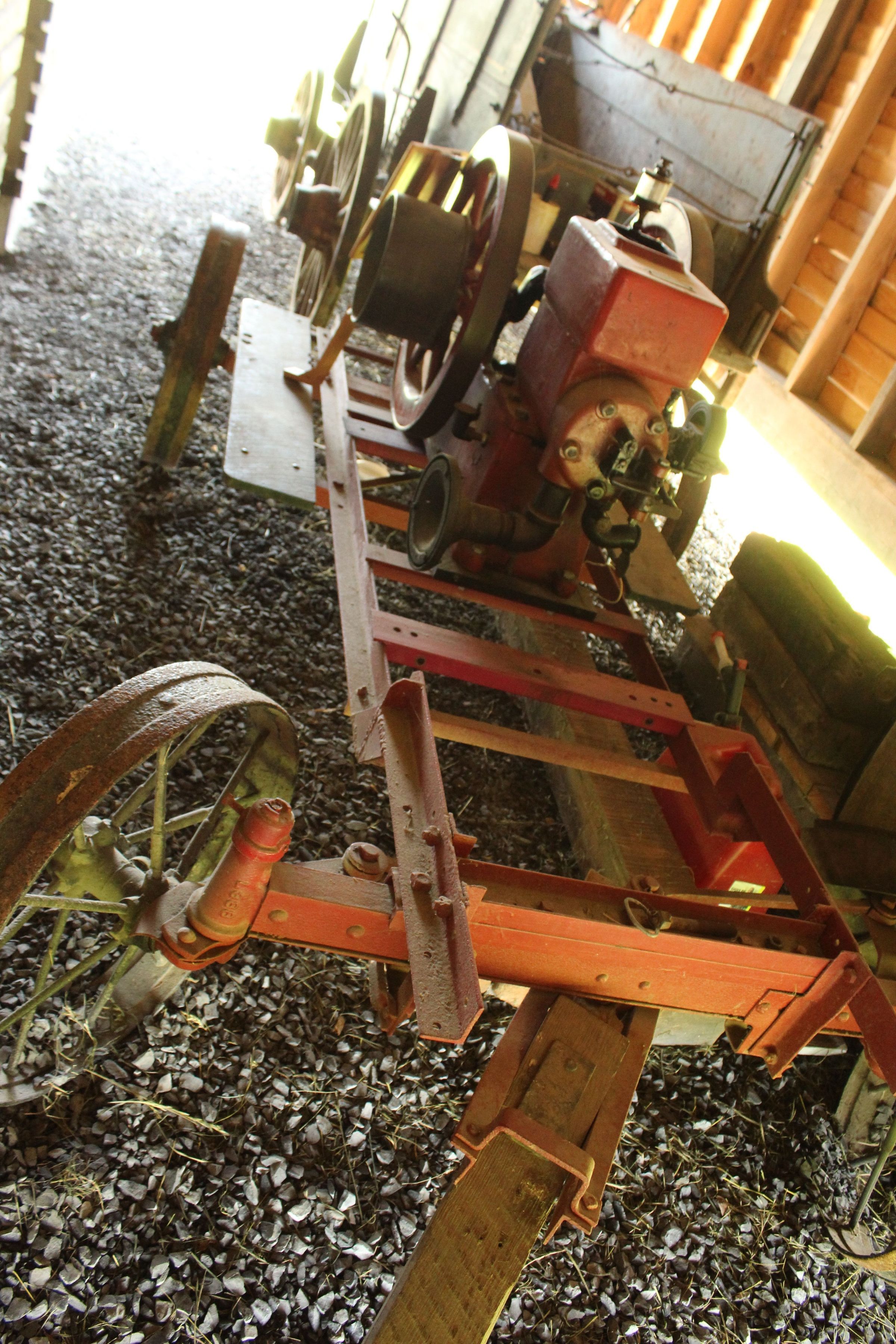 "Economy engine - 5 HP, manufactured about 1910. Lester Lind purchased this economy engine about 1983 It was used as an additional power source when he and Mary Beth were maintaining and operating the old mill near Harman, West Virginia It powered an old planer and a portable stone mill among other things. The engine sold for $700.00 in August 2009 at the Dr. Samuel Bucher family estate auction Mark Showalter and Alex M. Neff helped to restore the engine to running condition. Larry Martin located and restored the trick on which the engine is mounted. The engine is now donated to the Valley Brethren and Mennonite Heritage Center to become part of the CrossRoads historical collection. Cliff Lind"