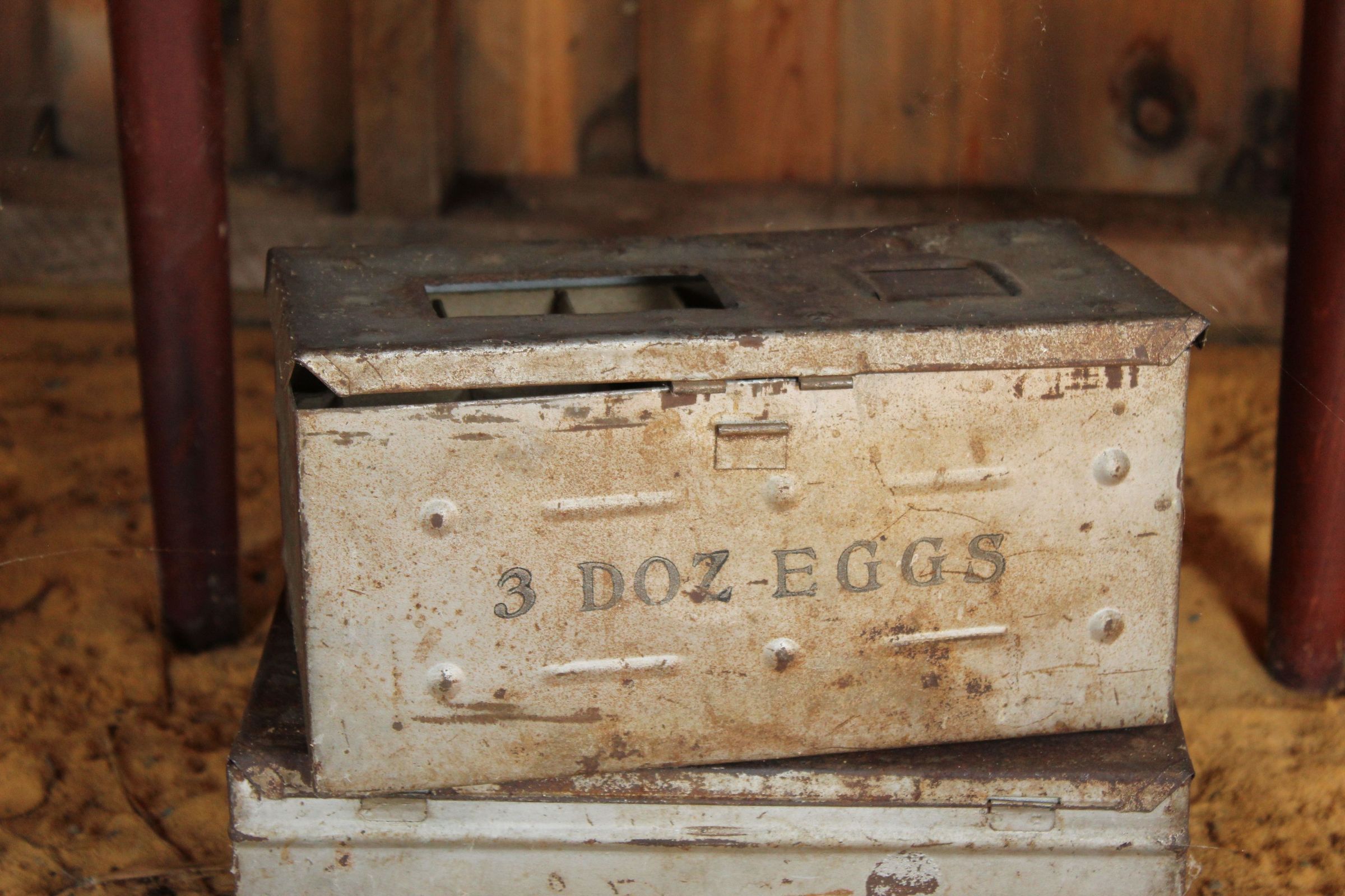 3 dozen tin carton of eggs, two count