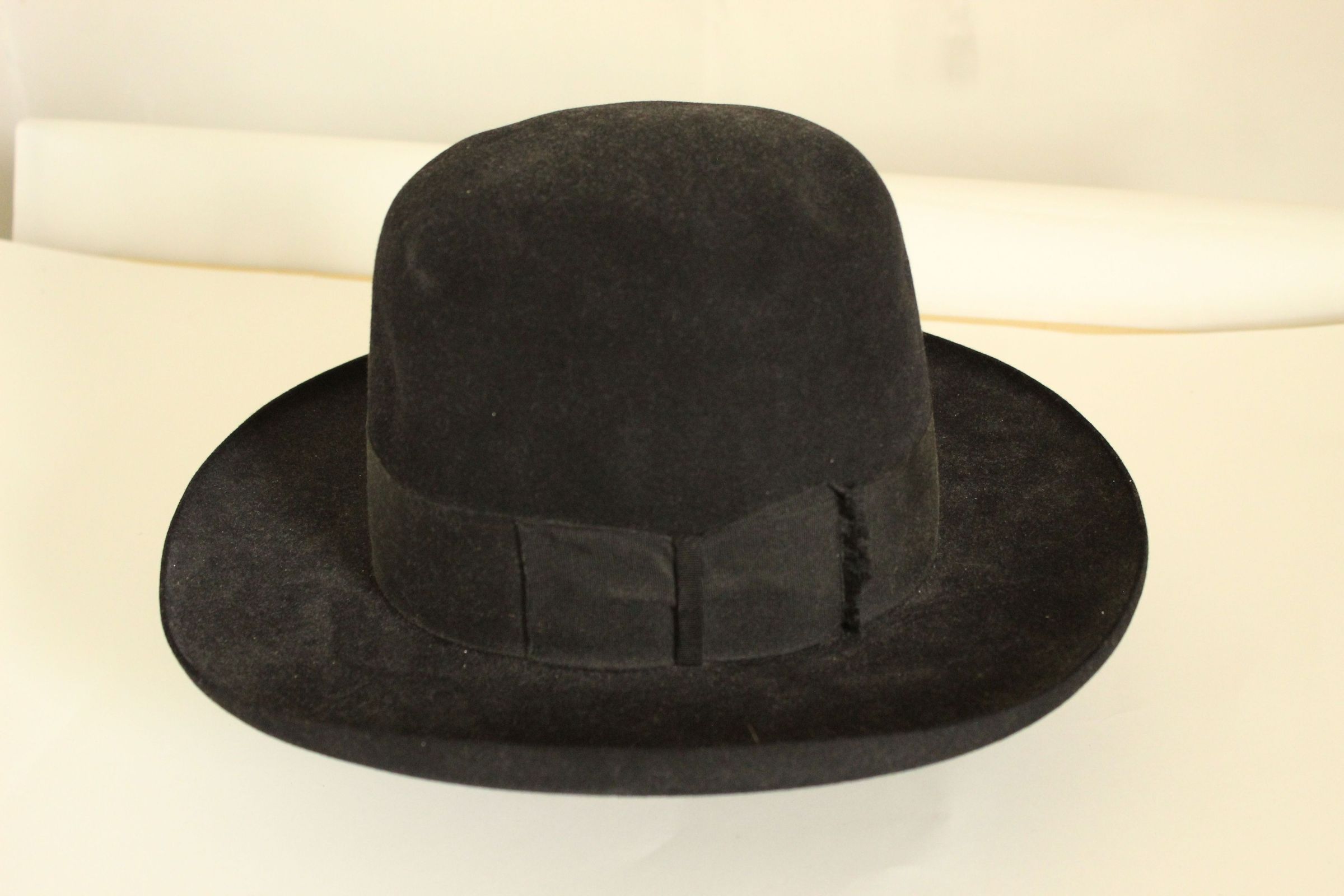 Man's black felt hat. Stamped on inside by John B. Stetson Company and B. Ney & Sons (Harrisonburg, VA). Belonged to Henry Blosser and has "HB" written inside twice.Cataloged By