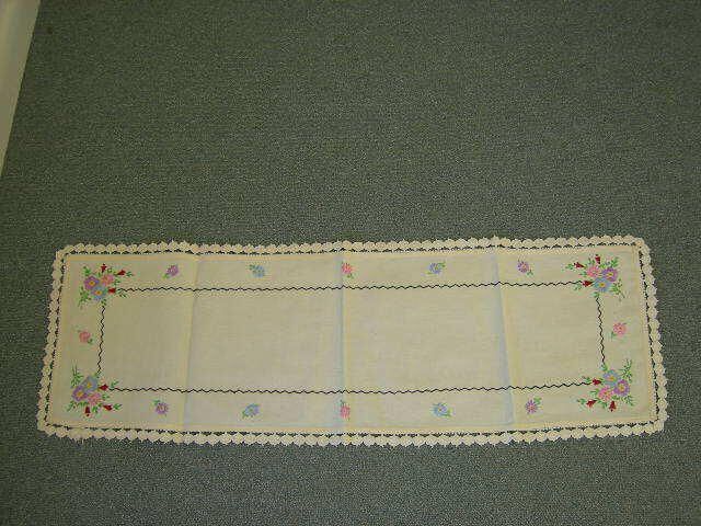 hand-embroidered by Bessie, with lace edgingTextile Type