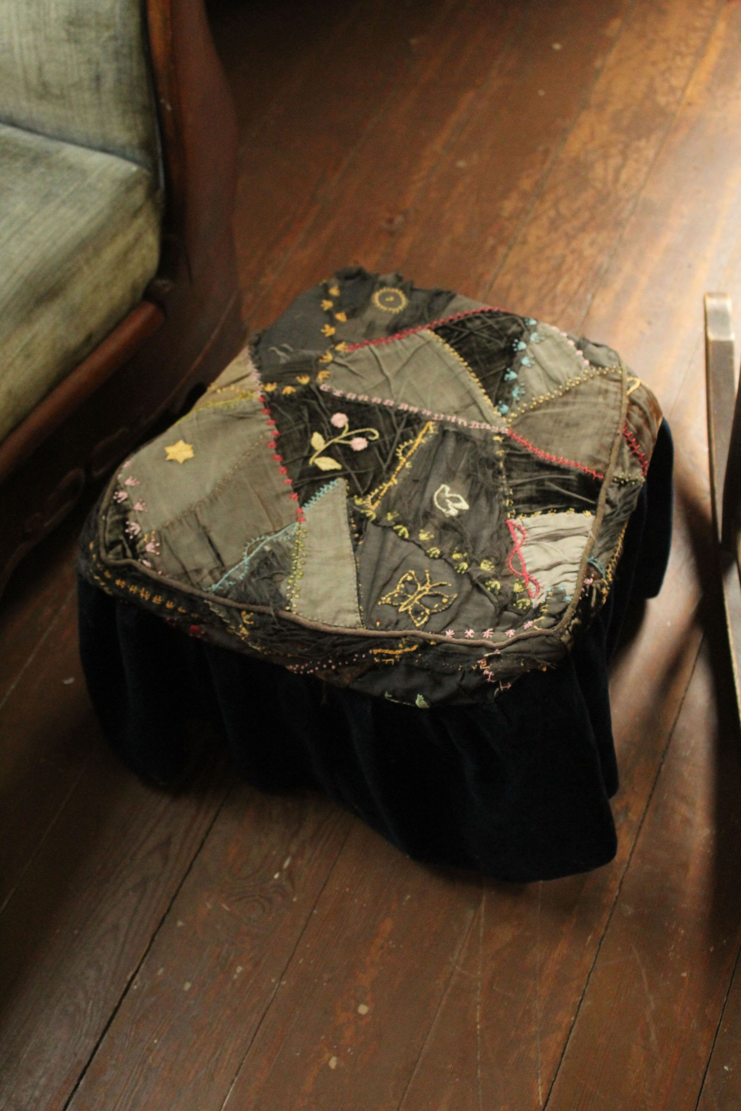 Quilted seat cover with skirt for a footstool