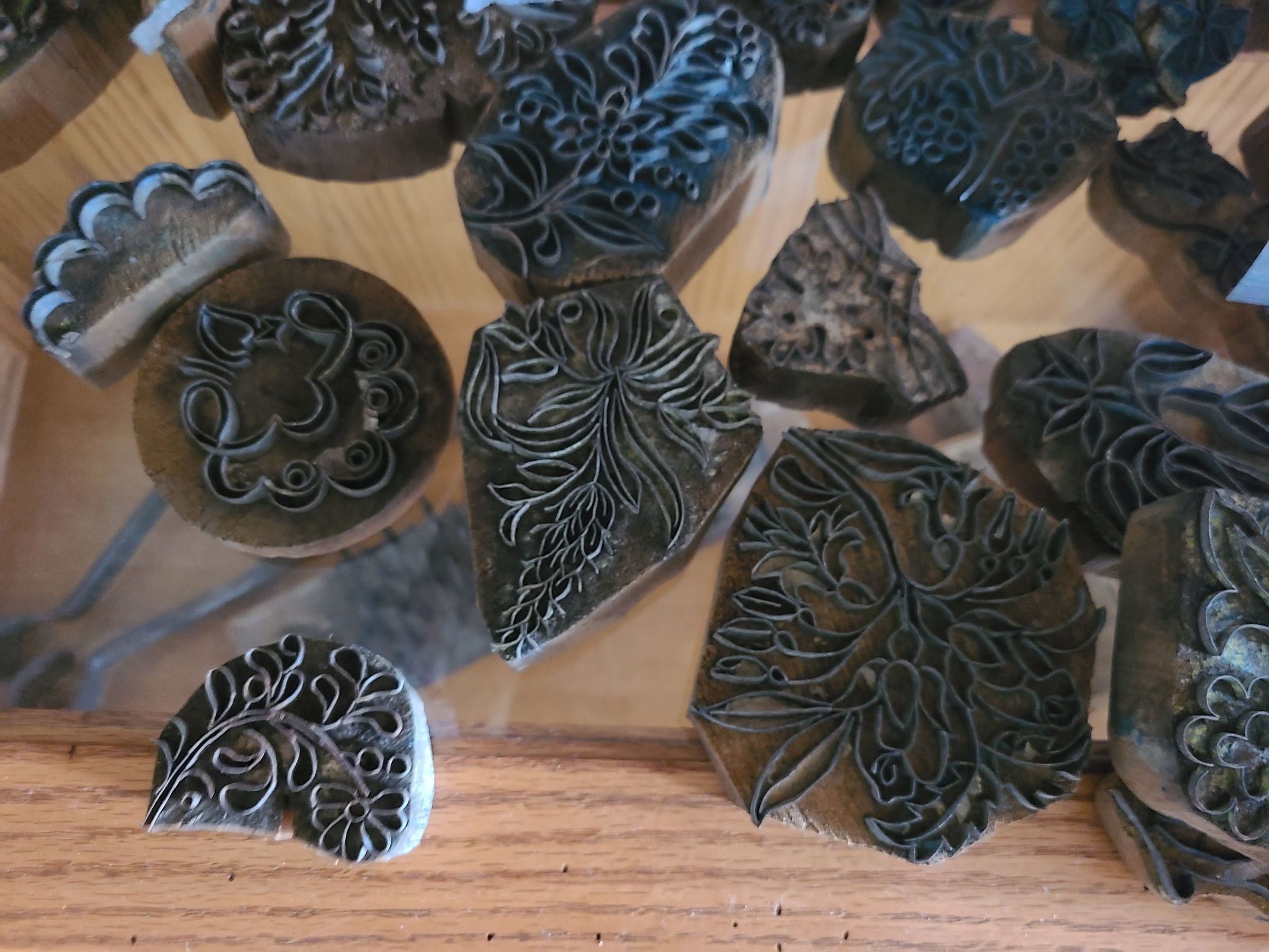 Stamps used to imprint a pattern on fabric to use as an embroidery templateCataloged By