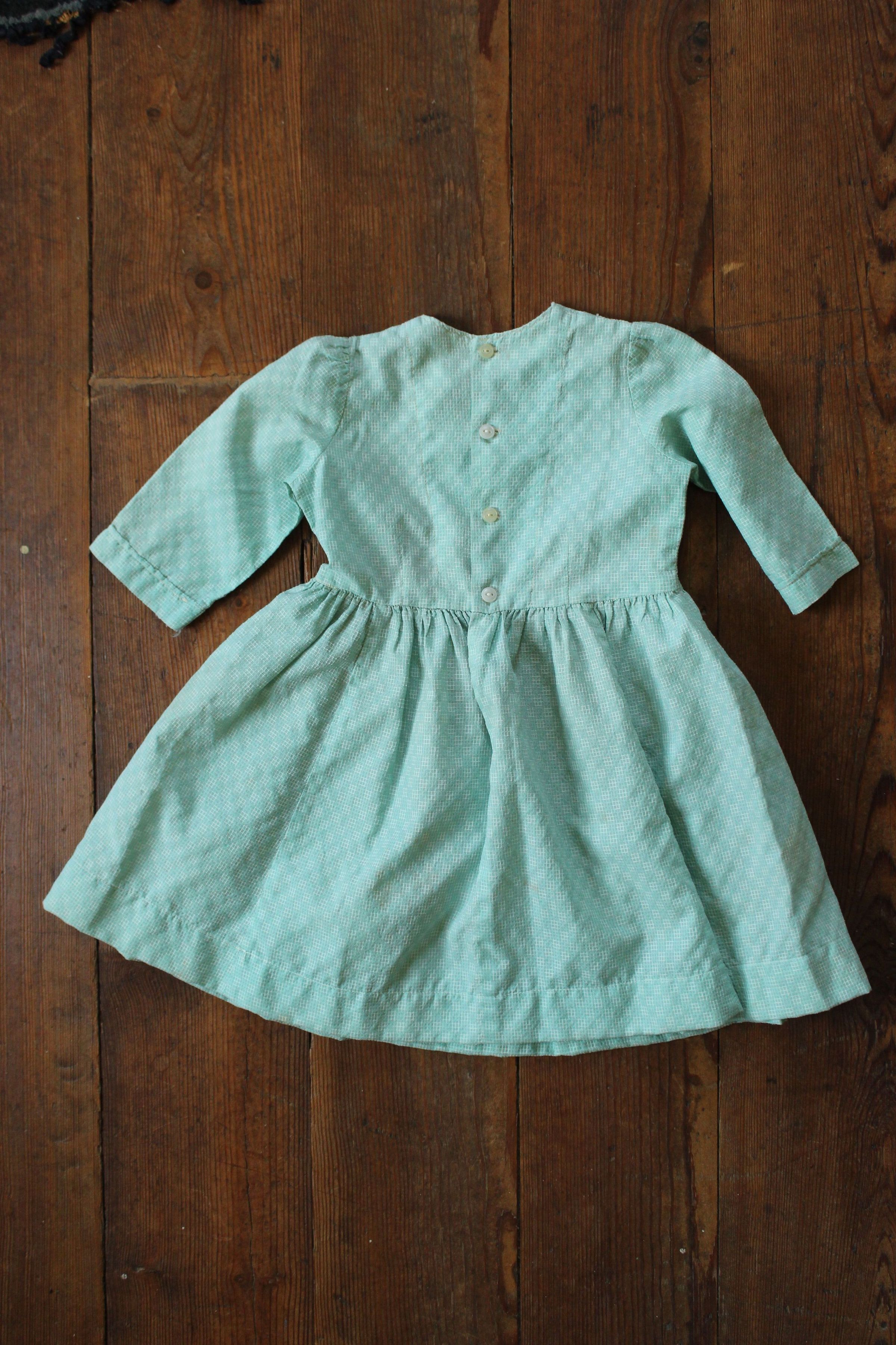 seafoam colored child's dress, buttoned up front