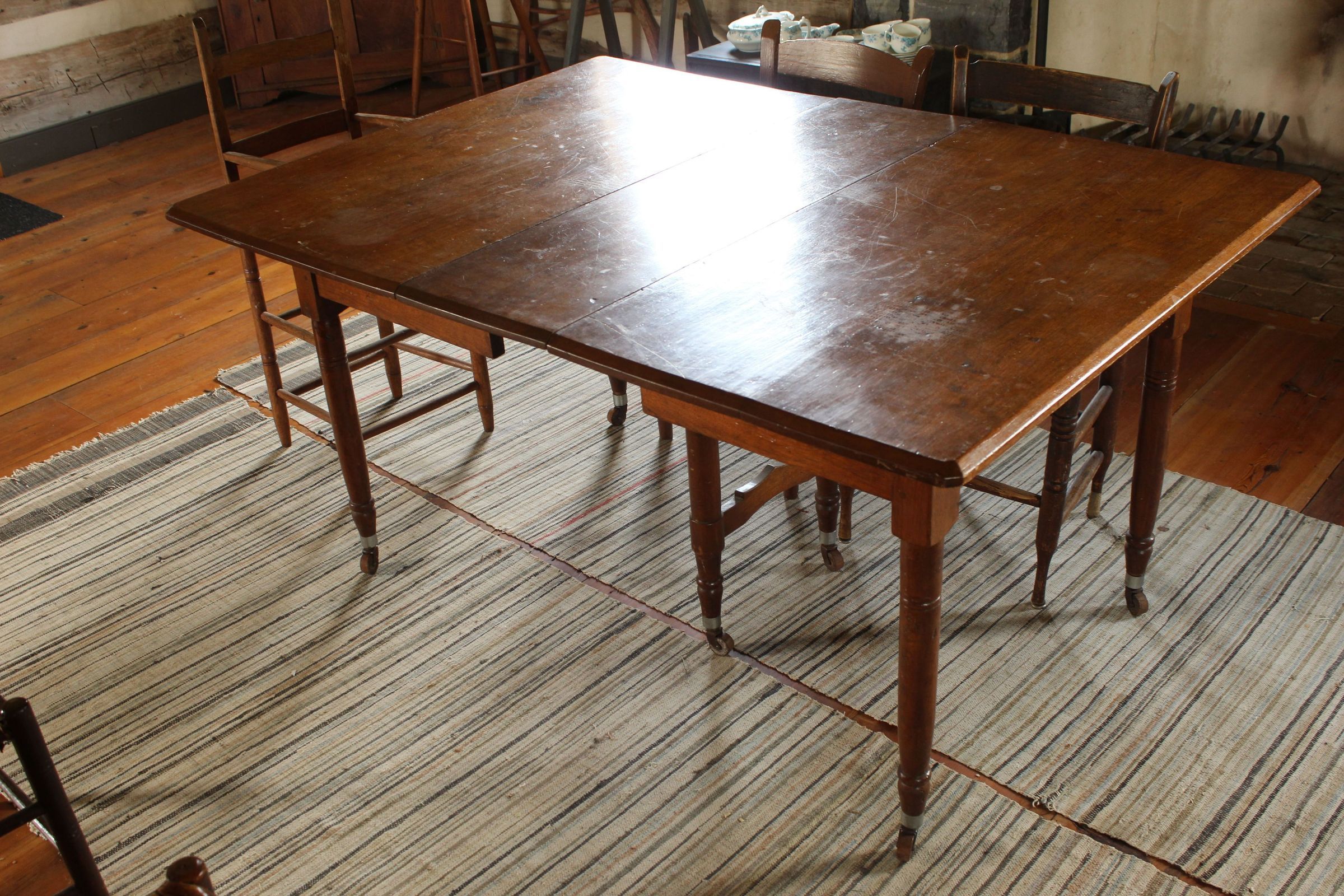 adjustable table with leaves, on wooden wheelsCataloged By