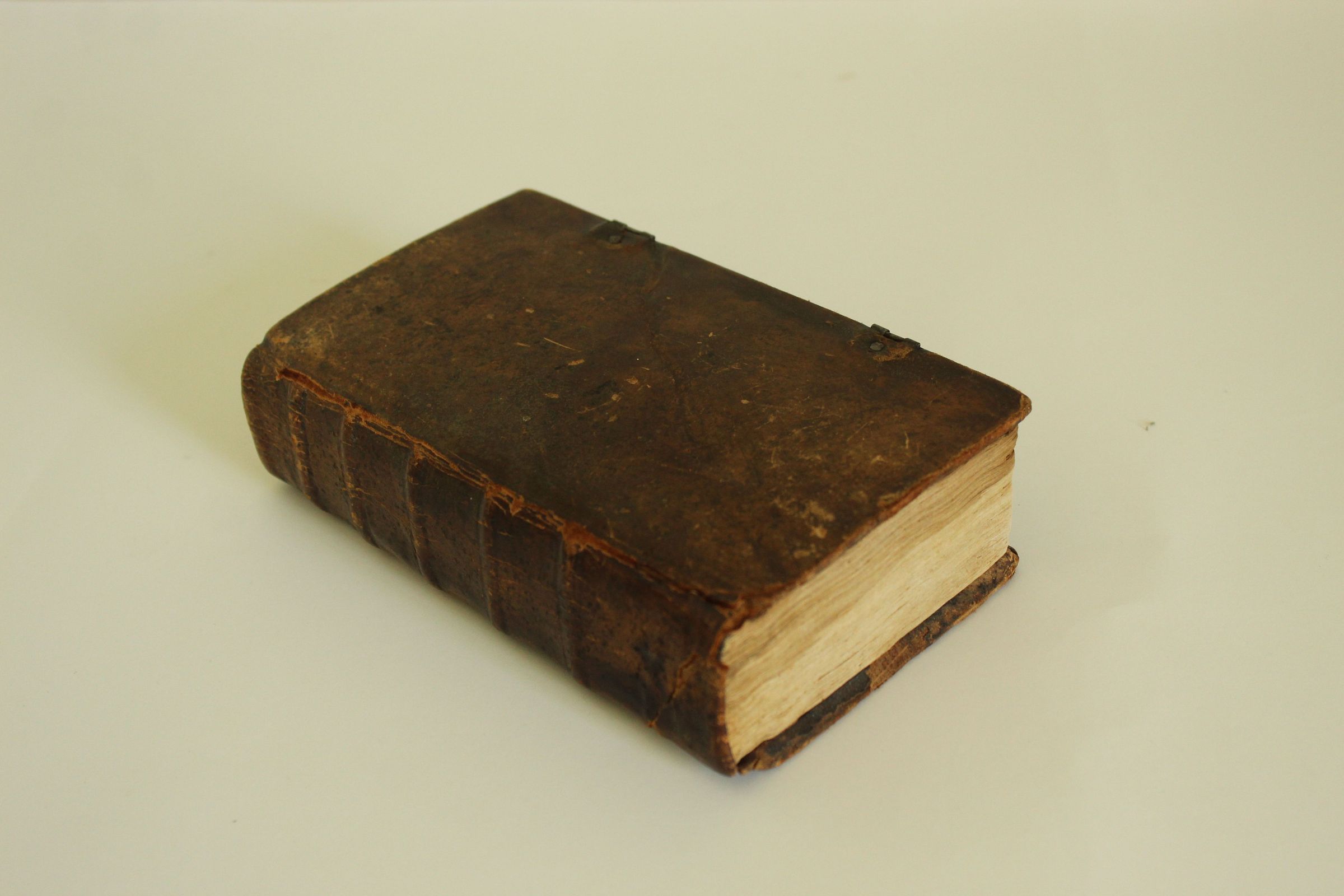Small leather bound book with two leather hinges or straps, one strap missing. Signed by Margaret Blosser. Written in German.Context