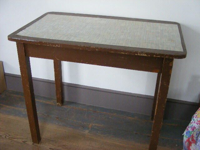 worn painted table with Contact paper on topUse