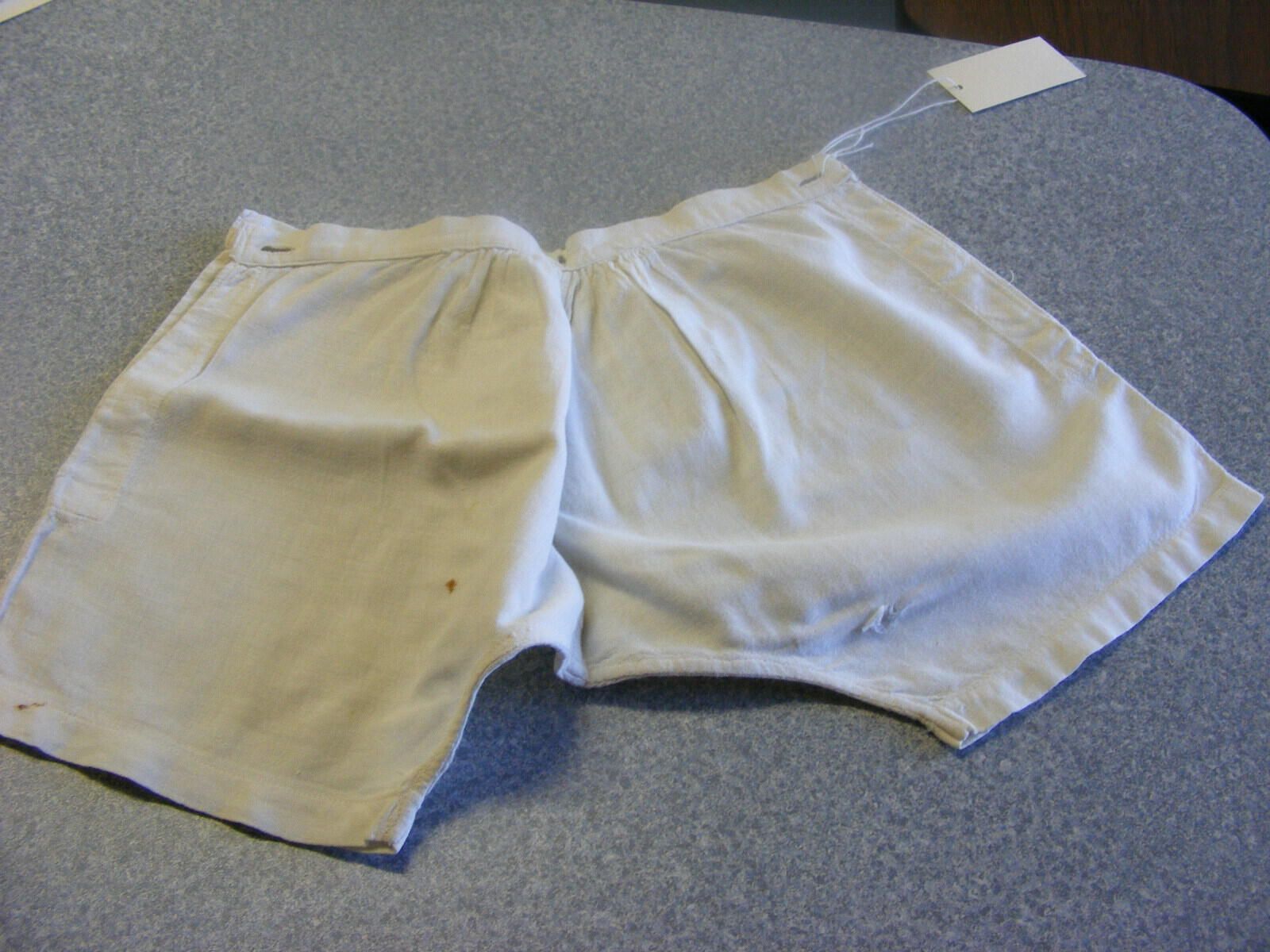 linen boys underwear (shorts) with buttonholes to connect to undershirt, open on sidesCataloged By