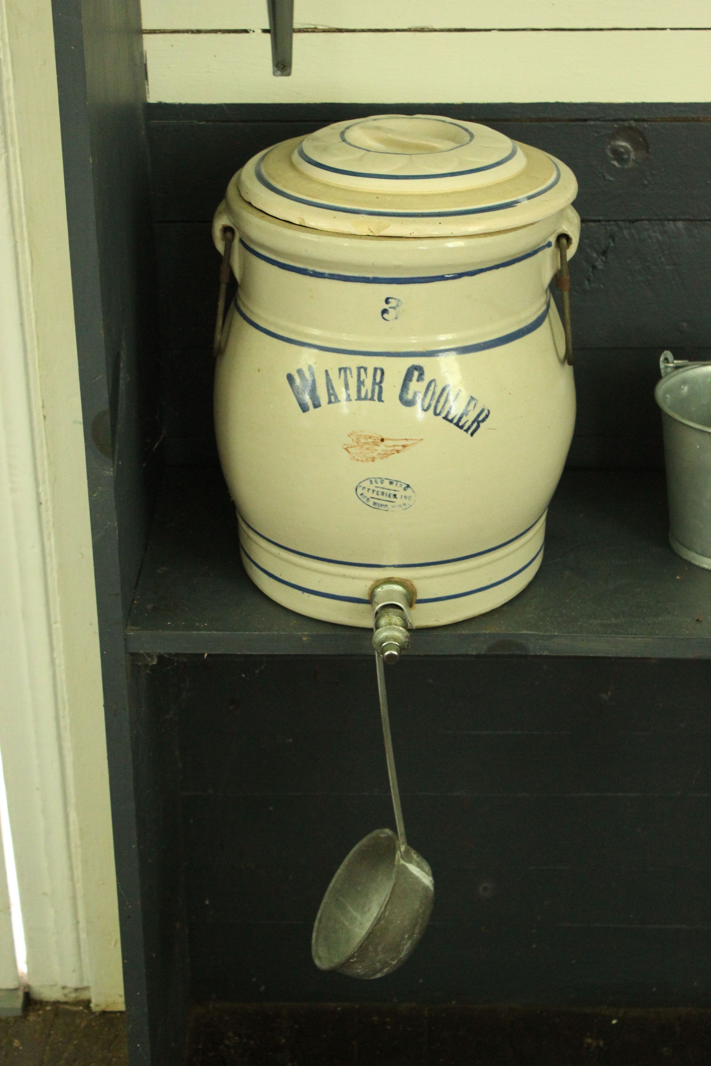 painted porcelain water cooler and dipper